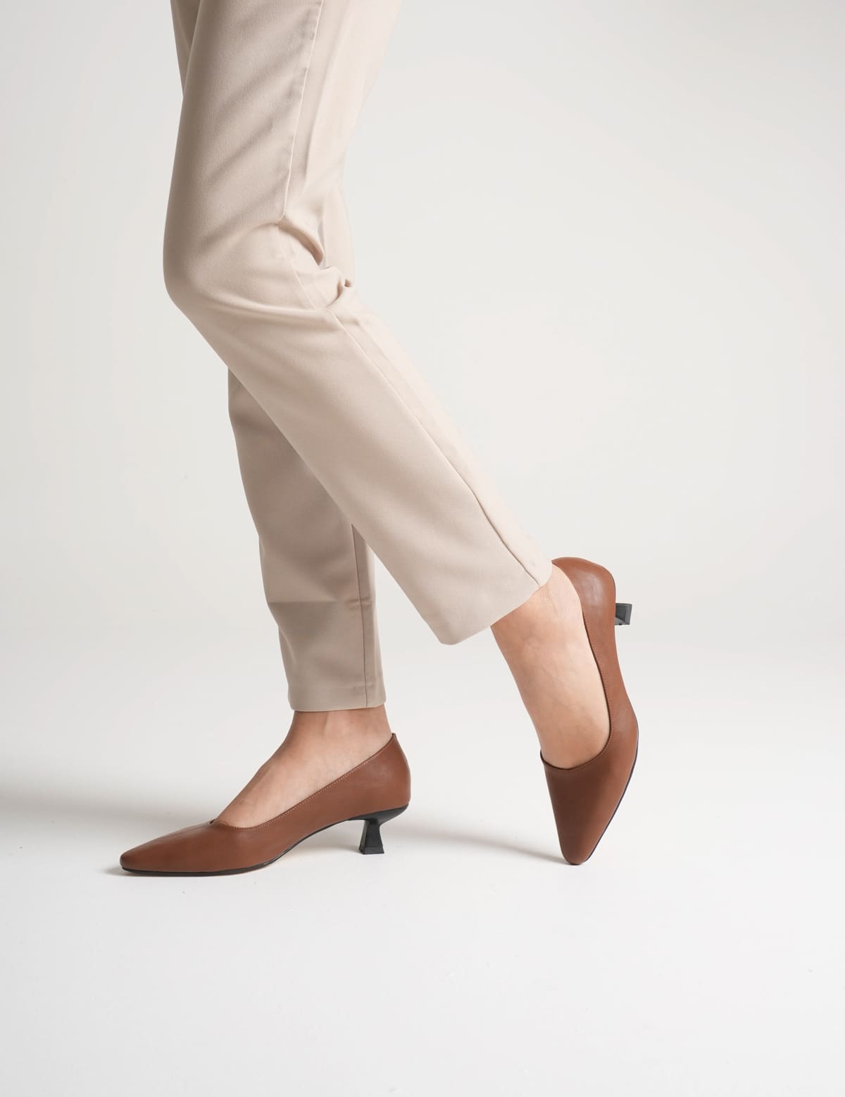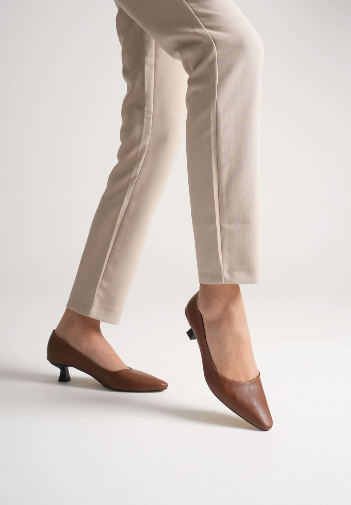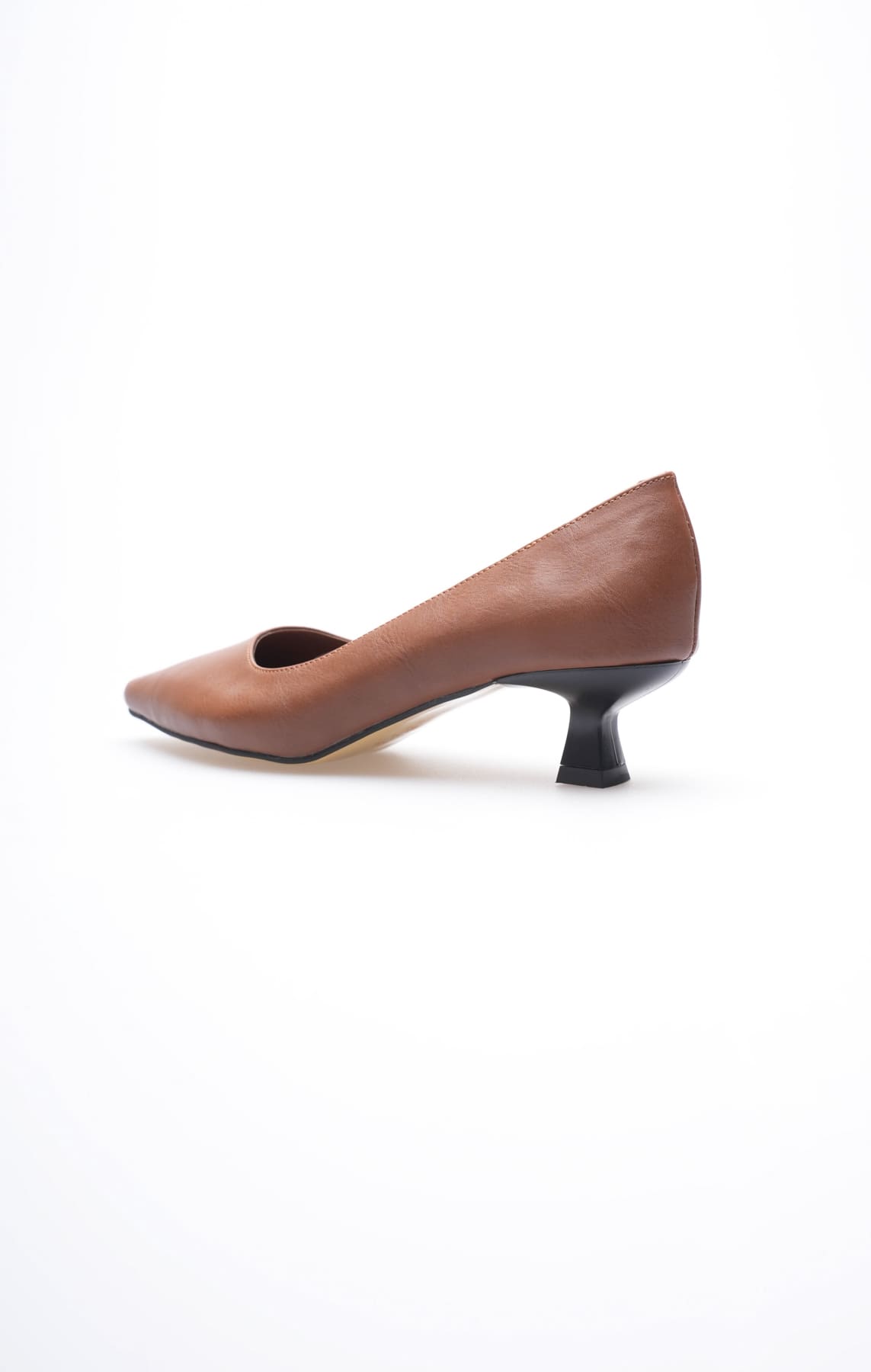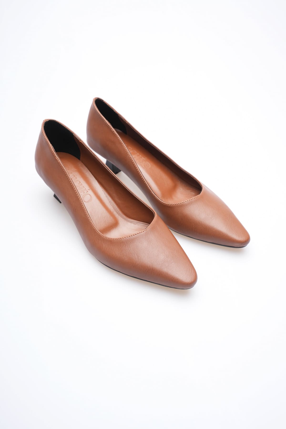 Cecilia Kadın Taba İnce Kısa Topuklu Ayakkabı