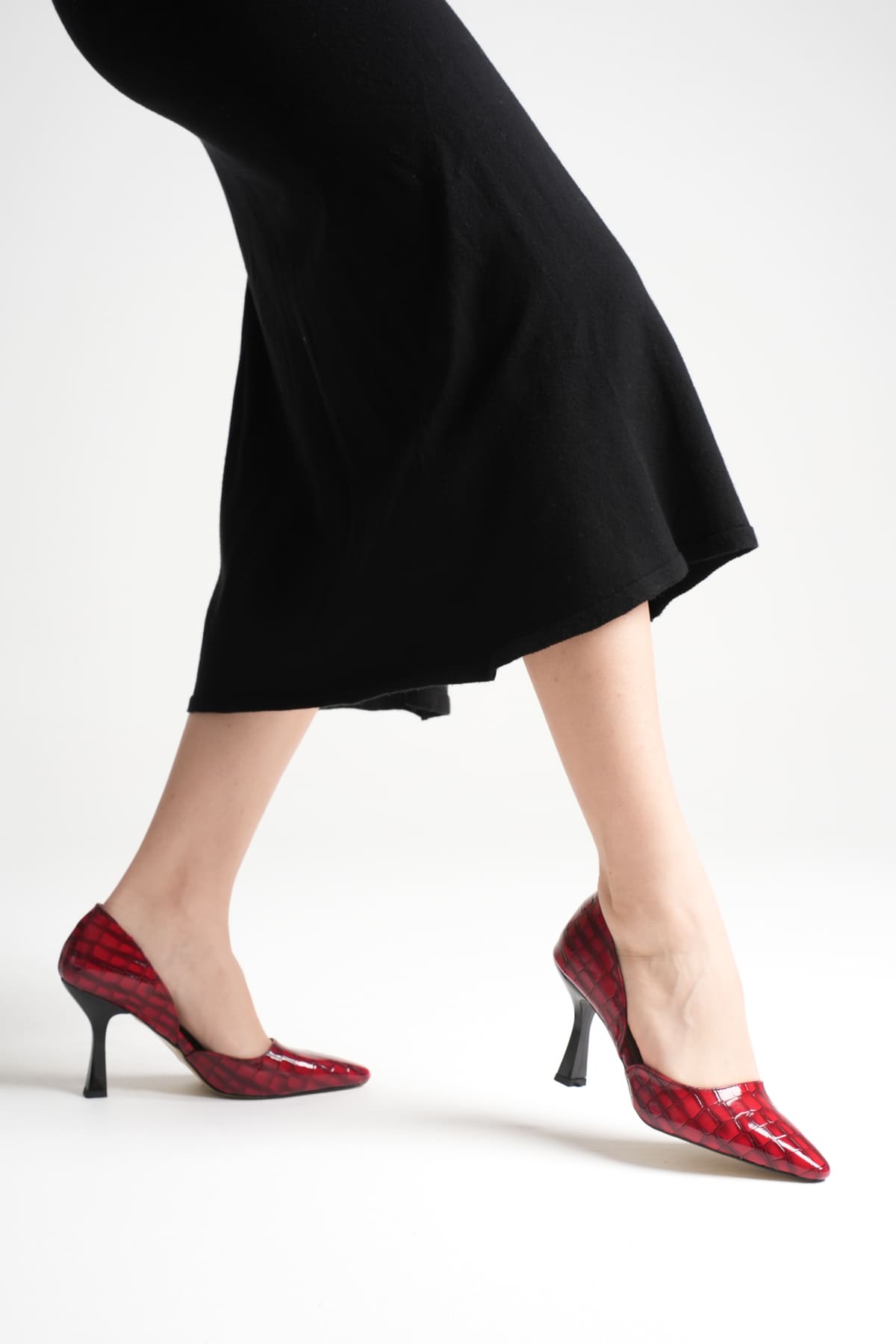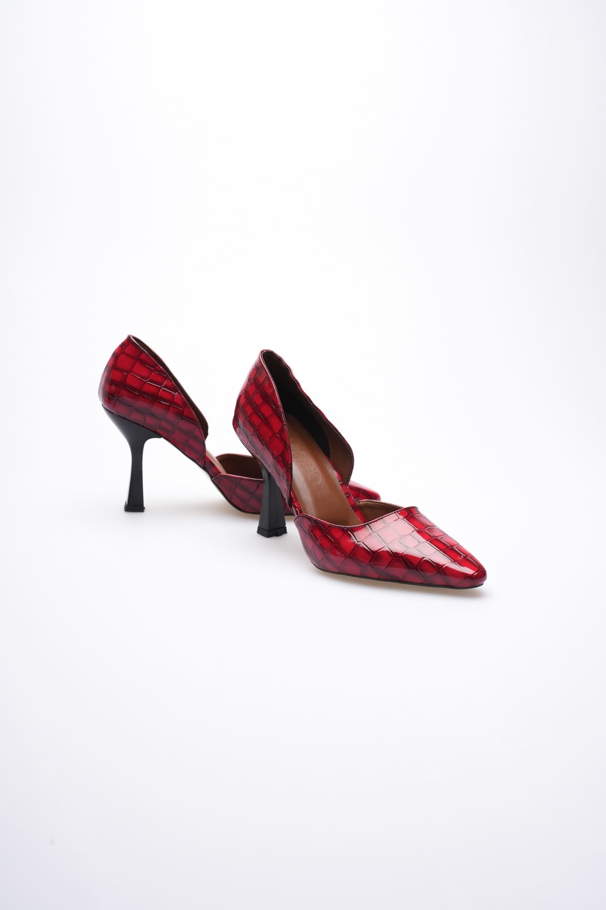 Angela Kadın Kırmızı Kroko Topuklu Ayakkabı