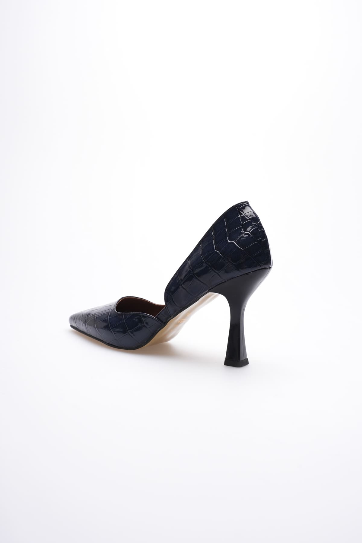 Angela Kadın Lacivert Kroko Topuklu Ayakkabı