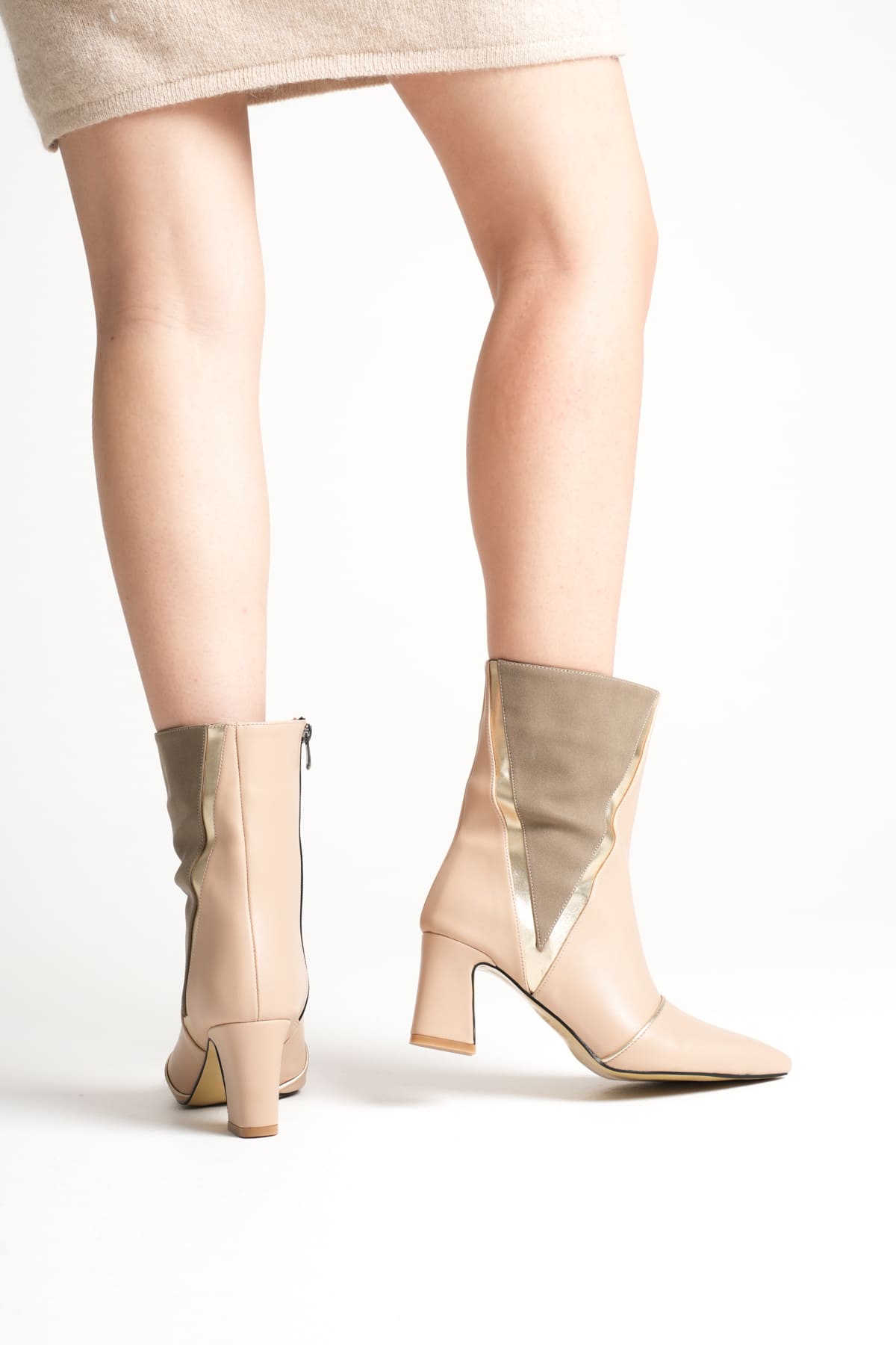 Anisa Kadın Bej Altın Kalın Topuklu Kışlık Bot