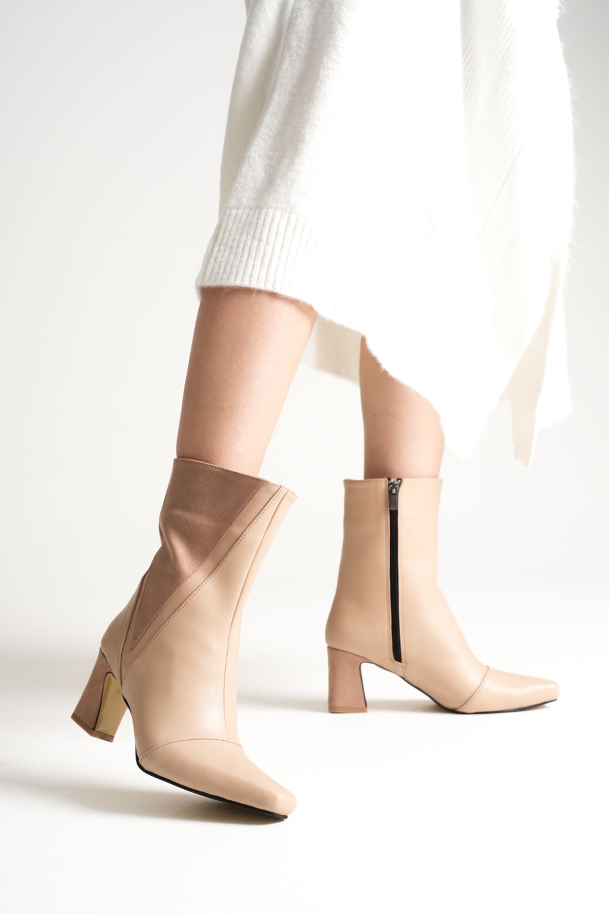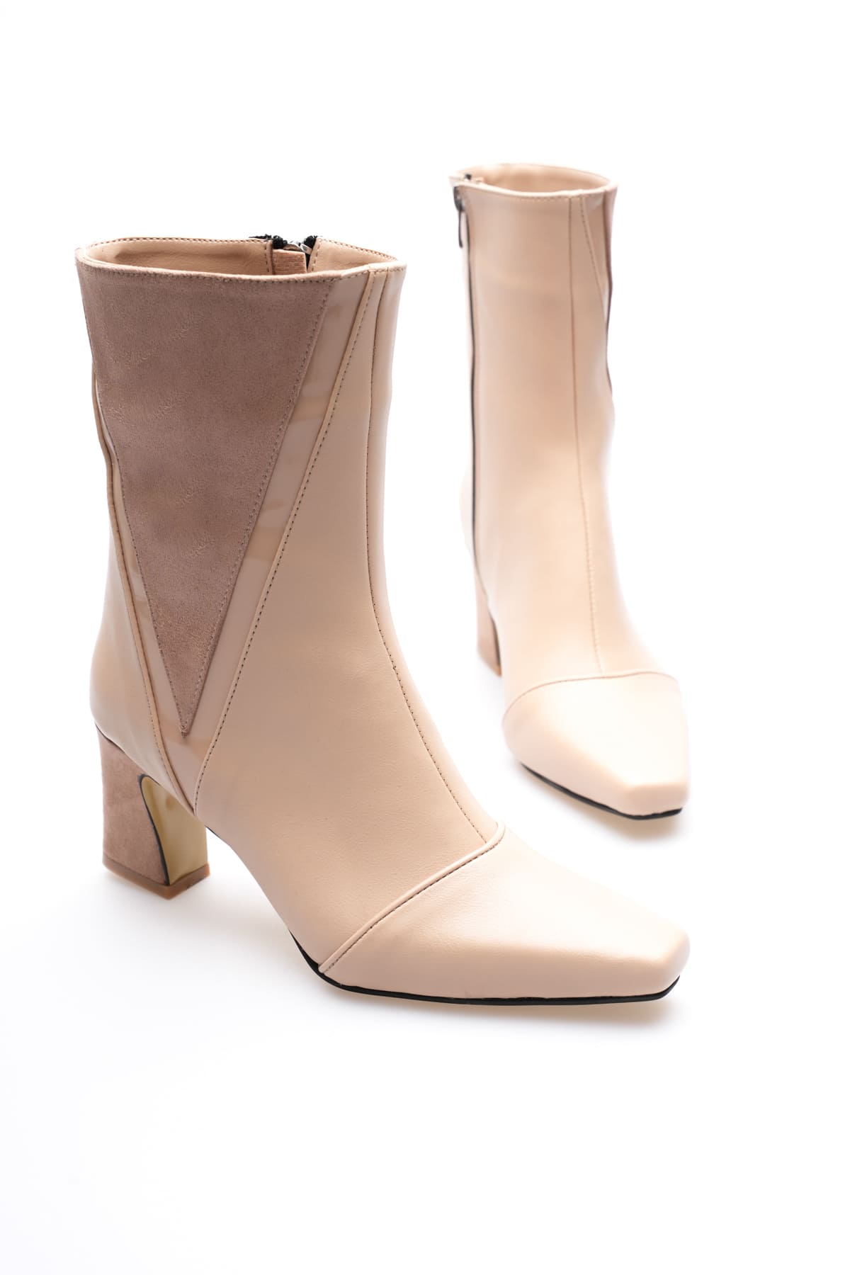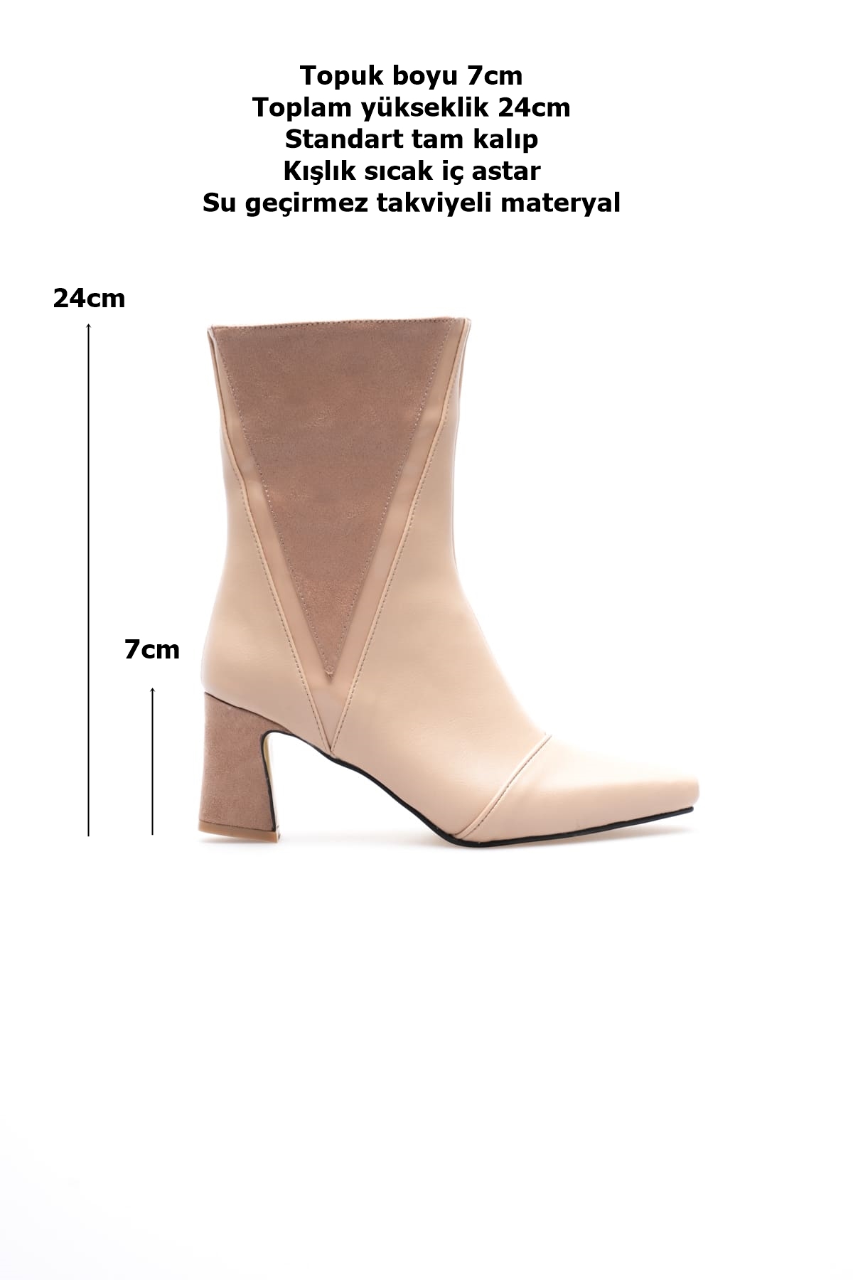 Anisa Kadın Bej Kalın Topuklu Kışlık Bot