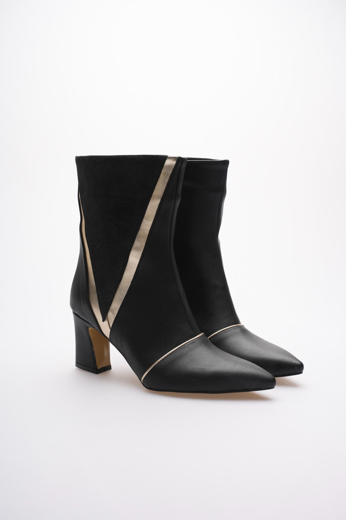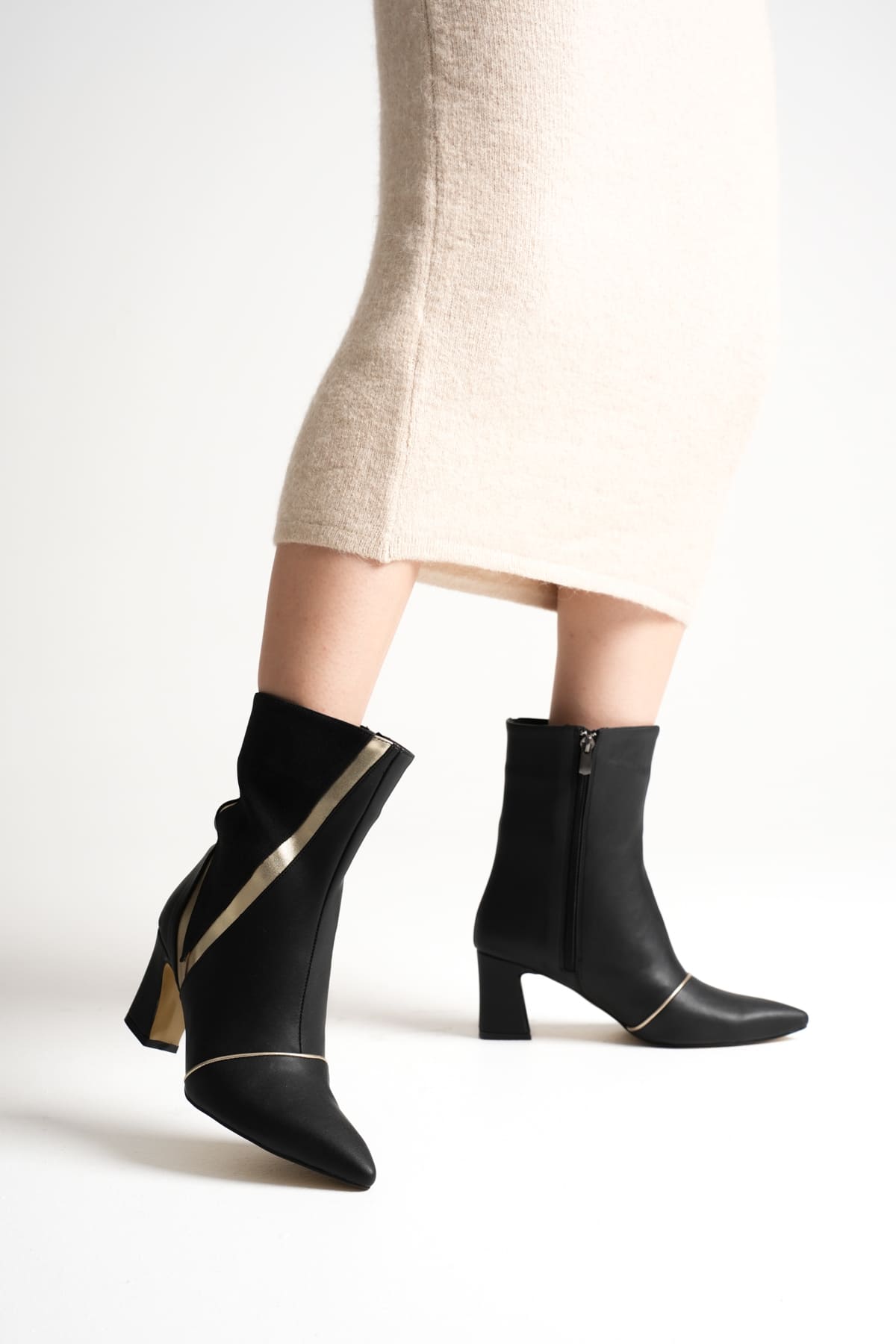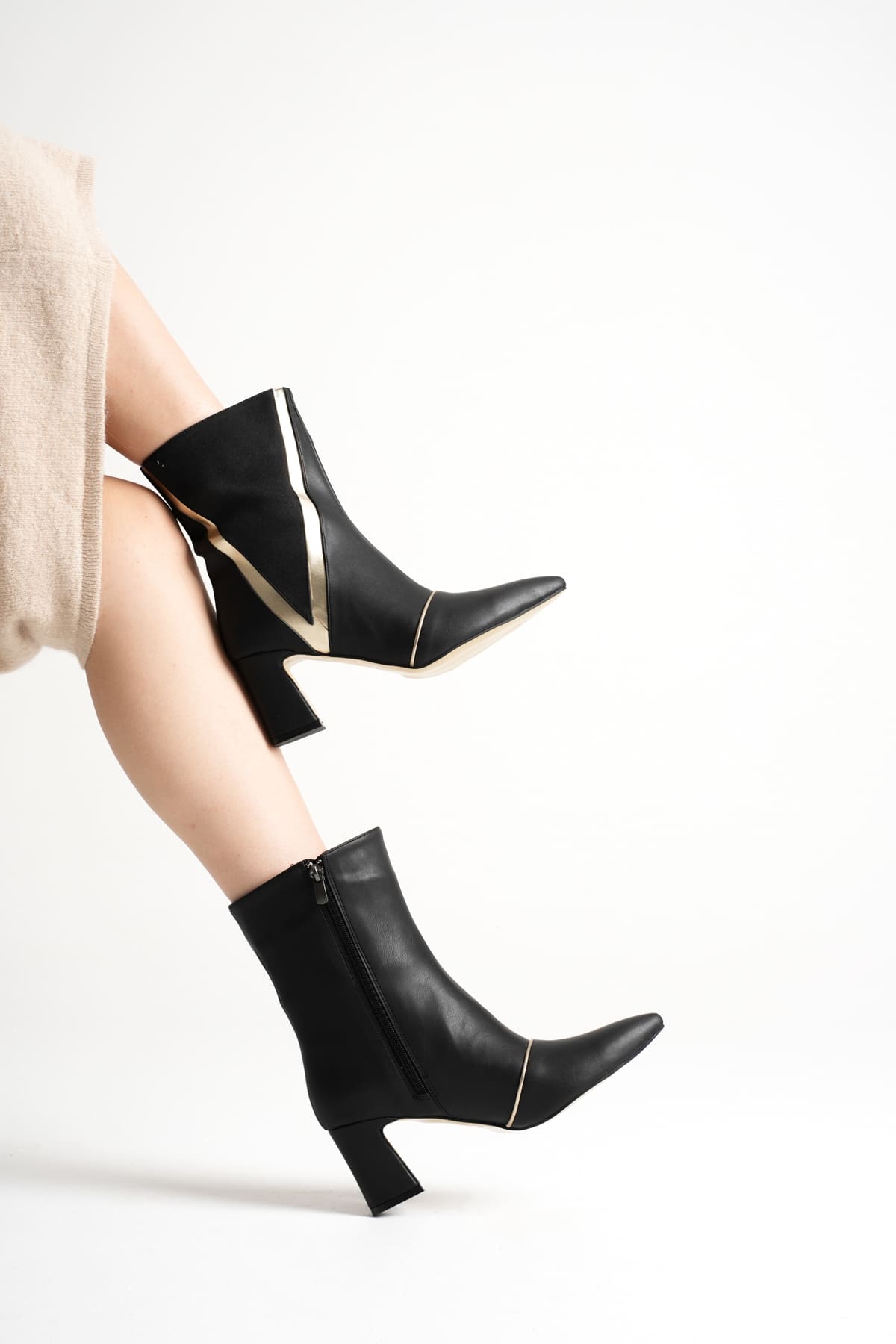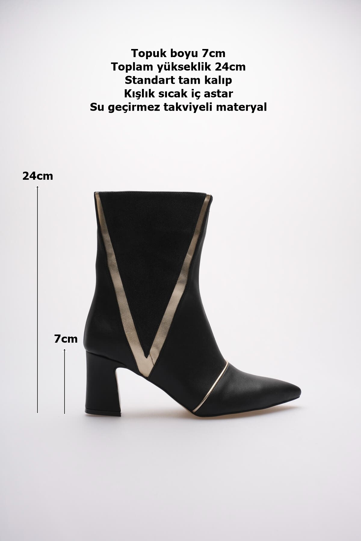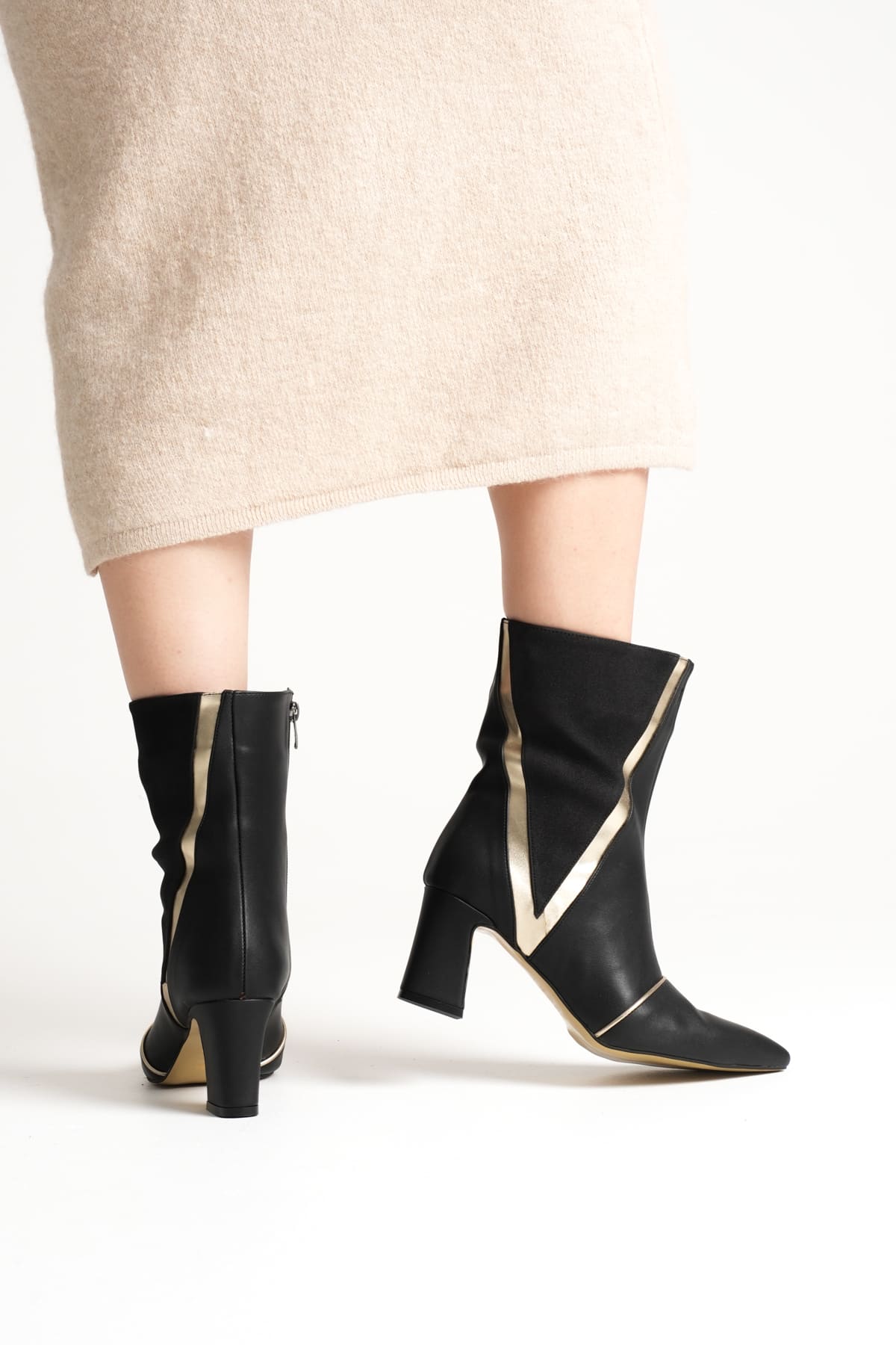 Anisa Kadın Siyah Altın Kalın Topuklu Kışlık Bot