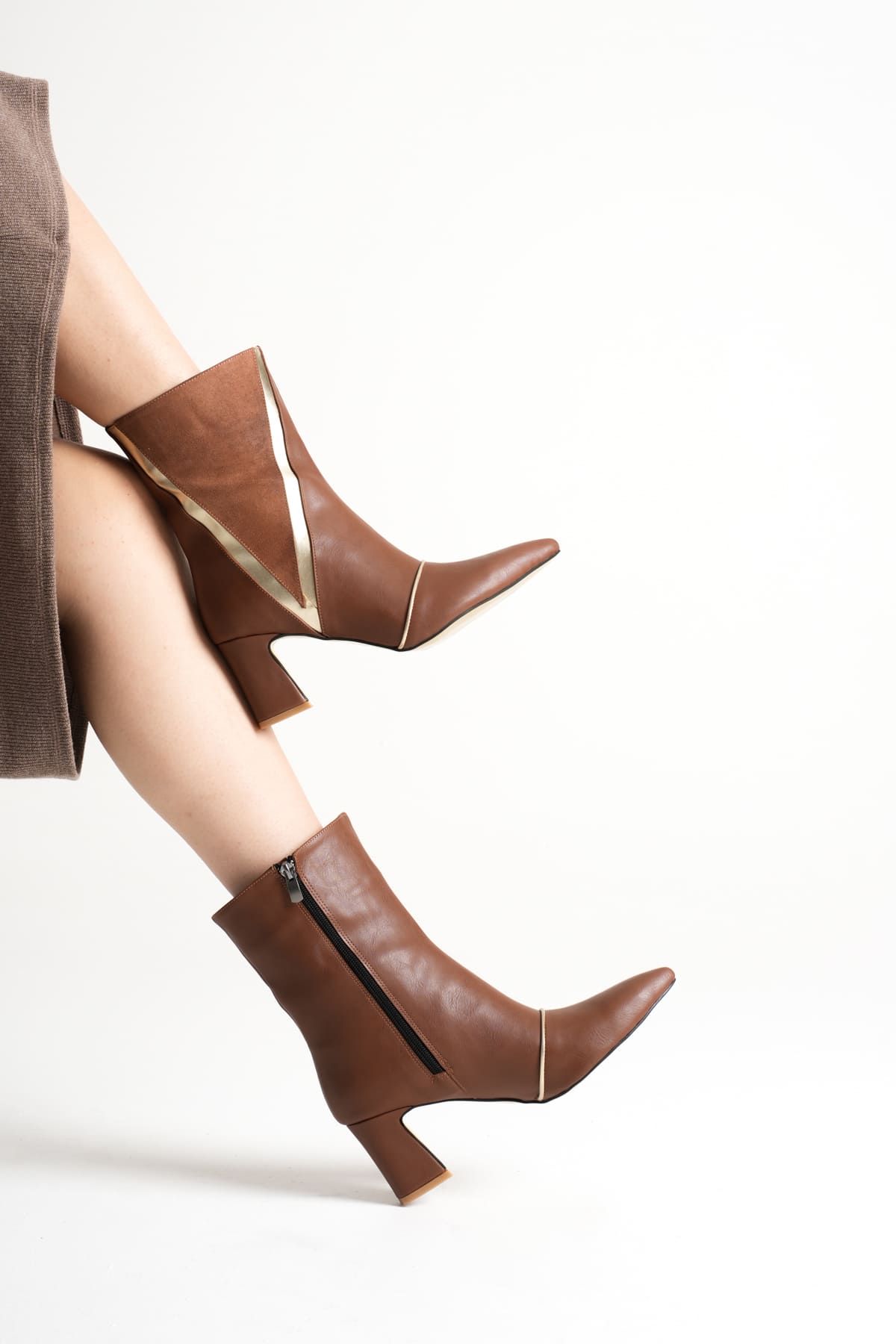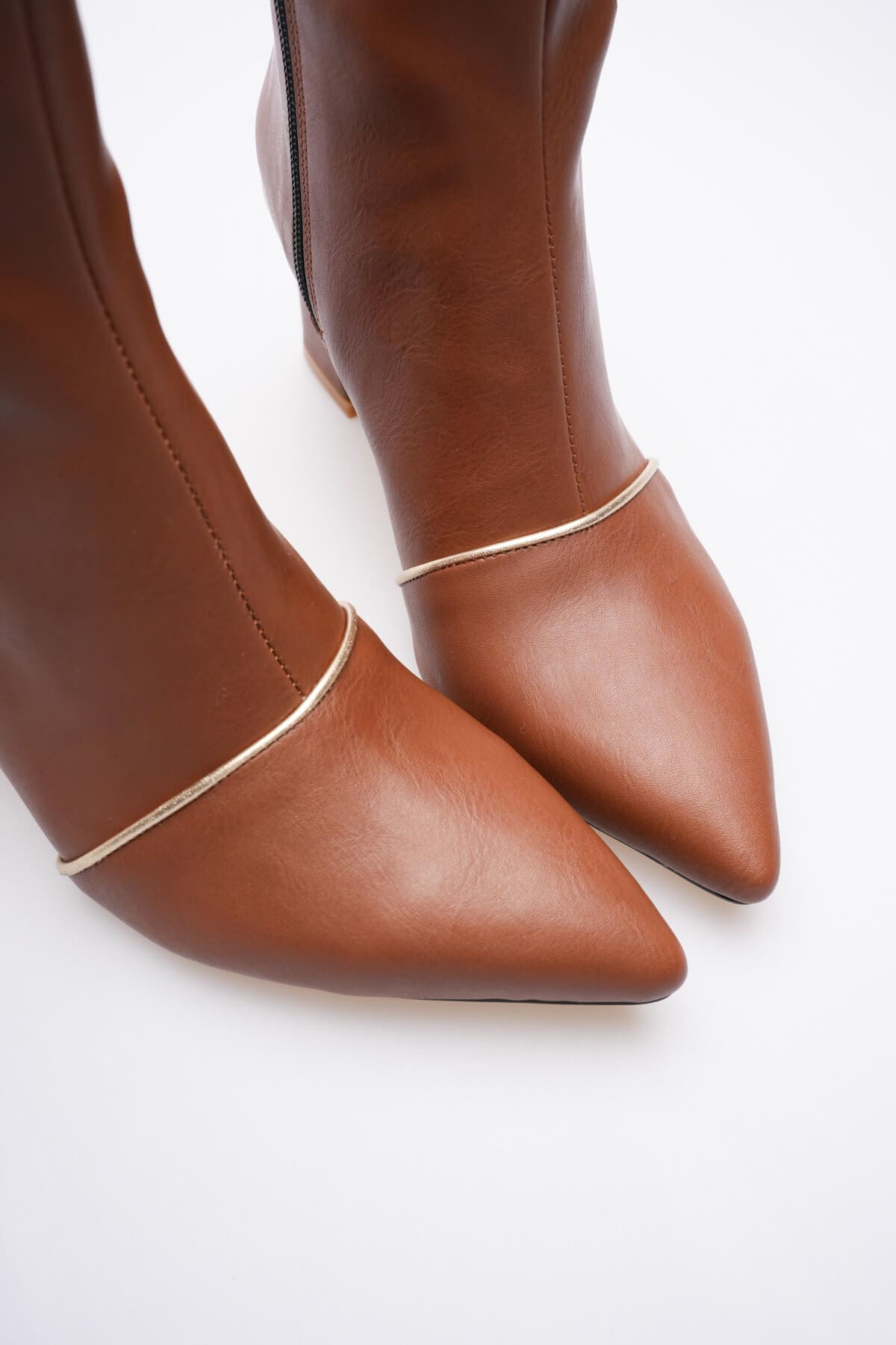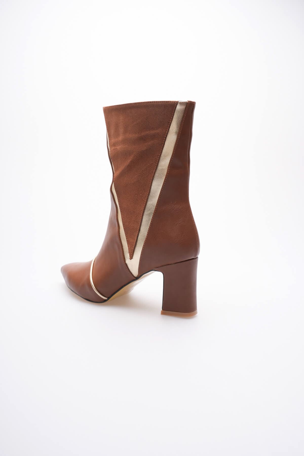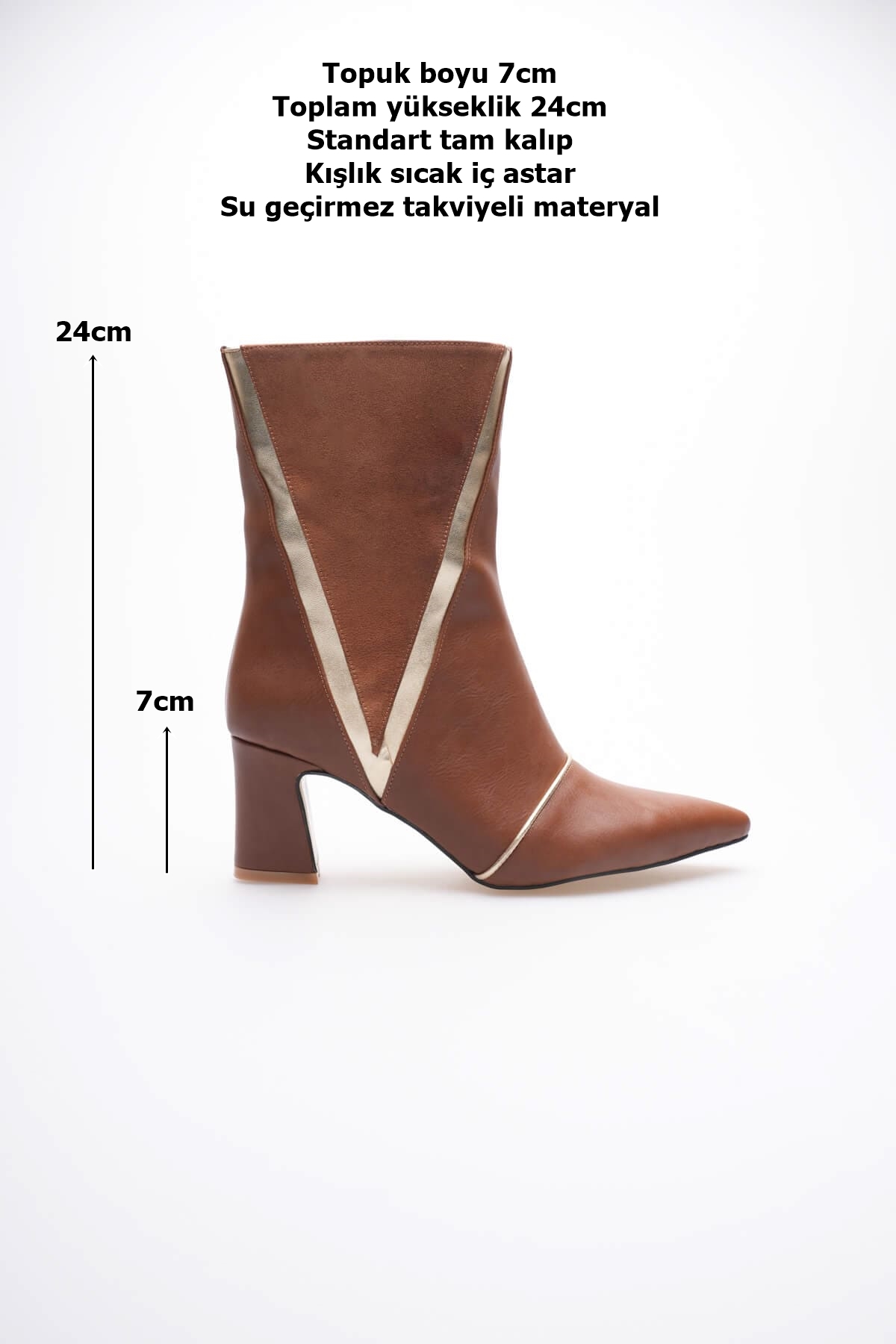 Anisa Kadın Taba Altın Kalın Topuklu Kışlık Bot