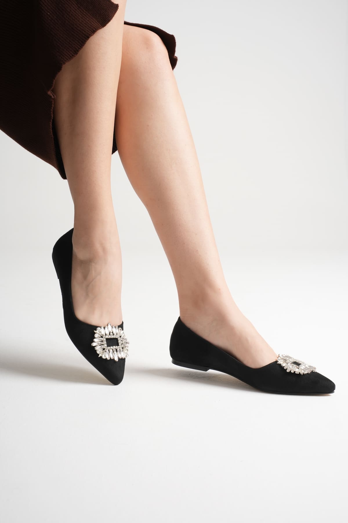 Arden Kadın Siyah Süet Babet Ayakkabı