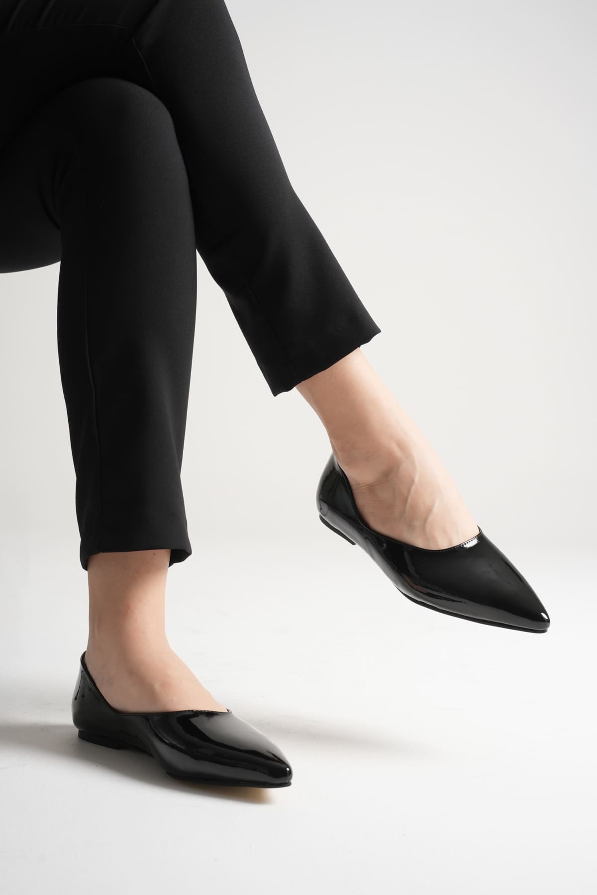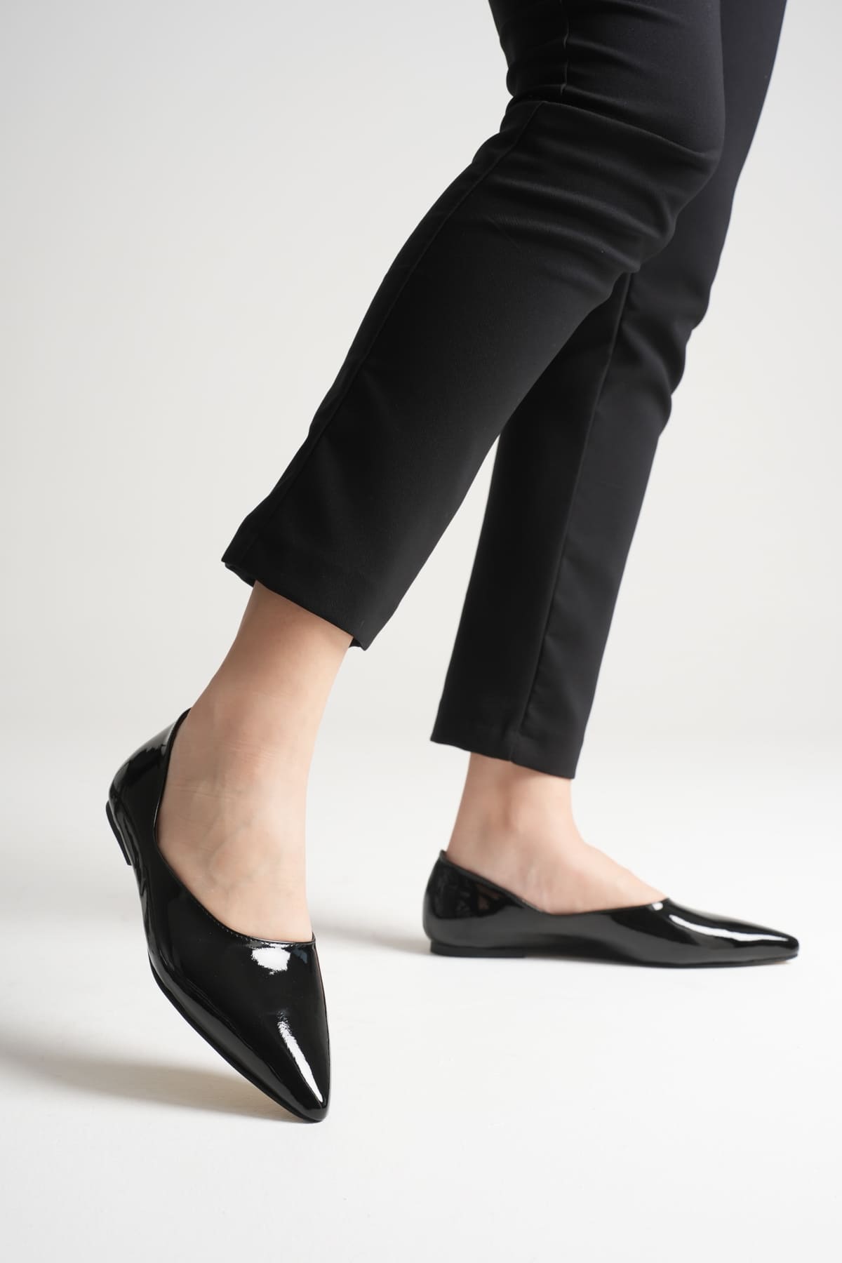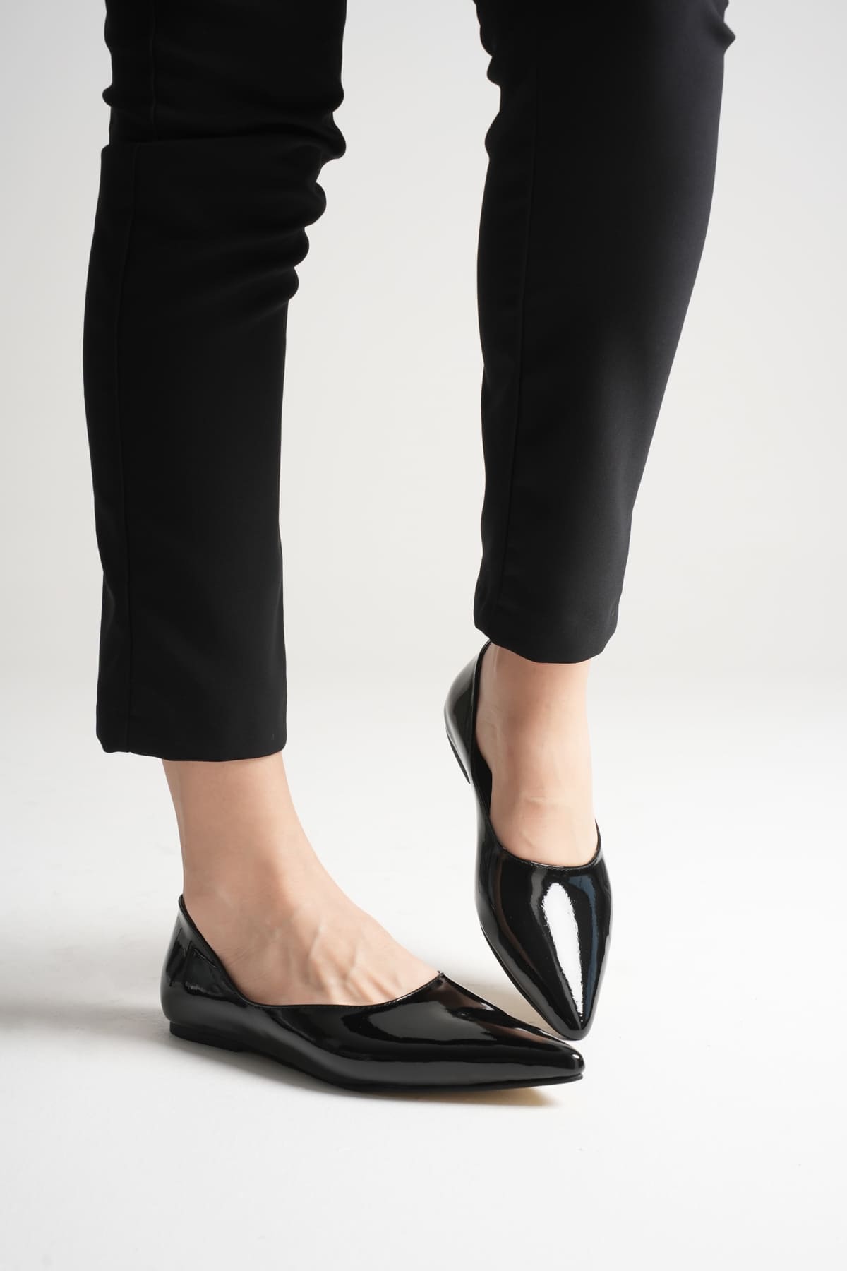 Ariana Kadın Günlük Siyah Rugan Babet Ayakkabı