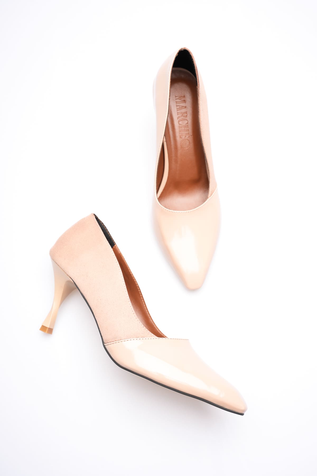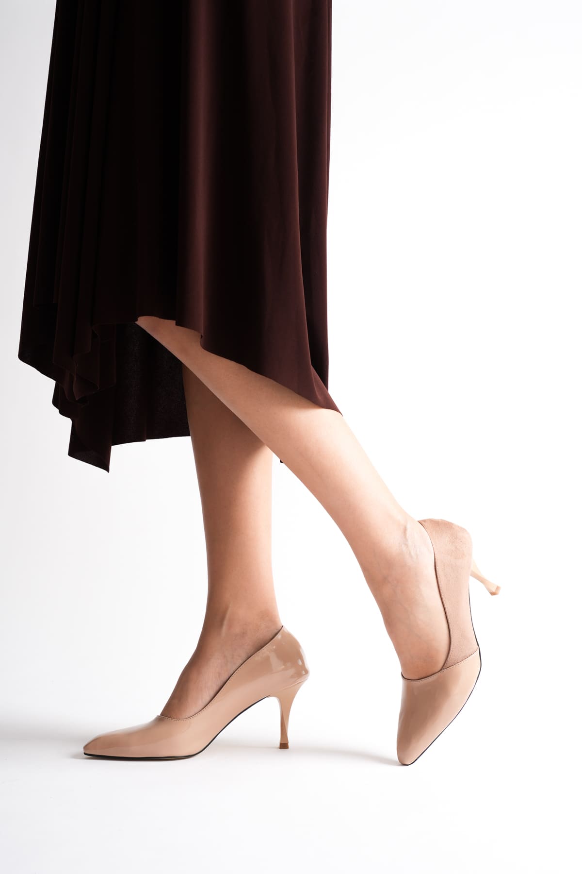 Cecilia Kadın Bej İnce Kısa Topuklu Ayakkabı