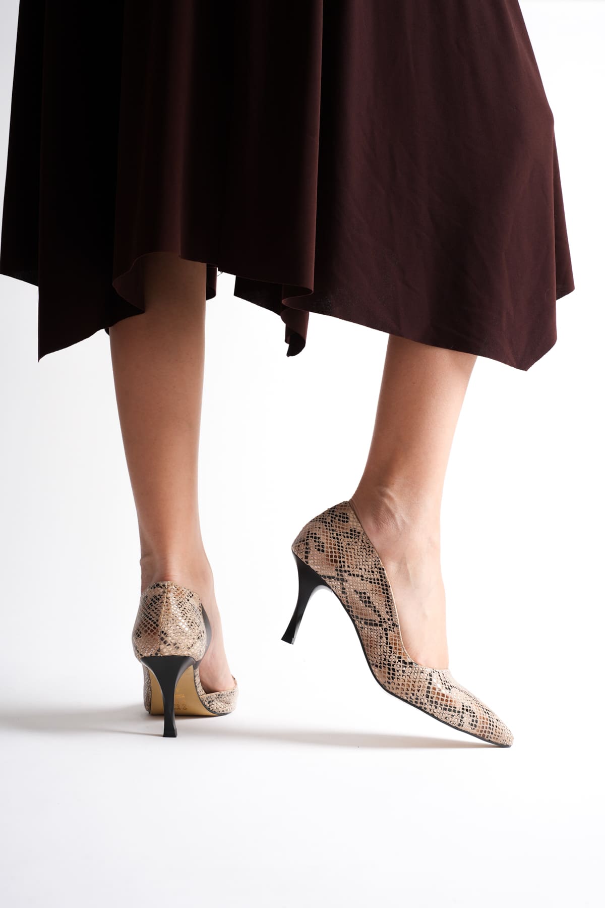 Diana Kadın Bej Baskılı İnce Topuklu Ayakkabı