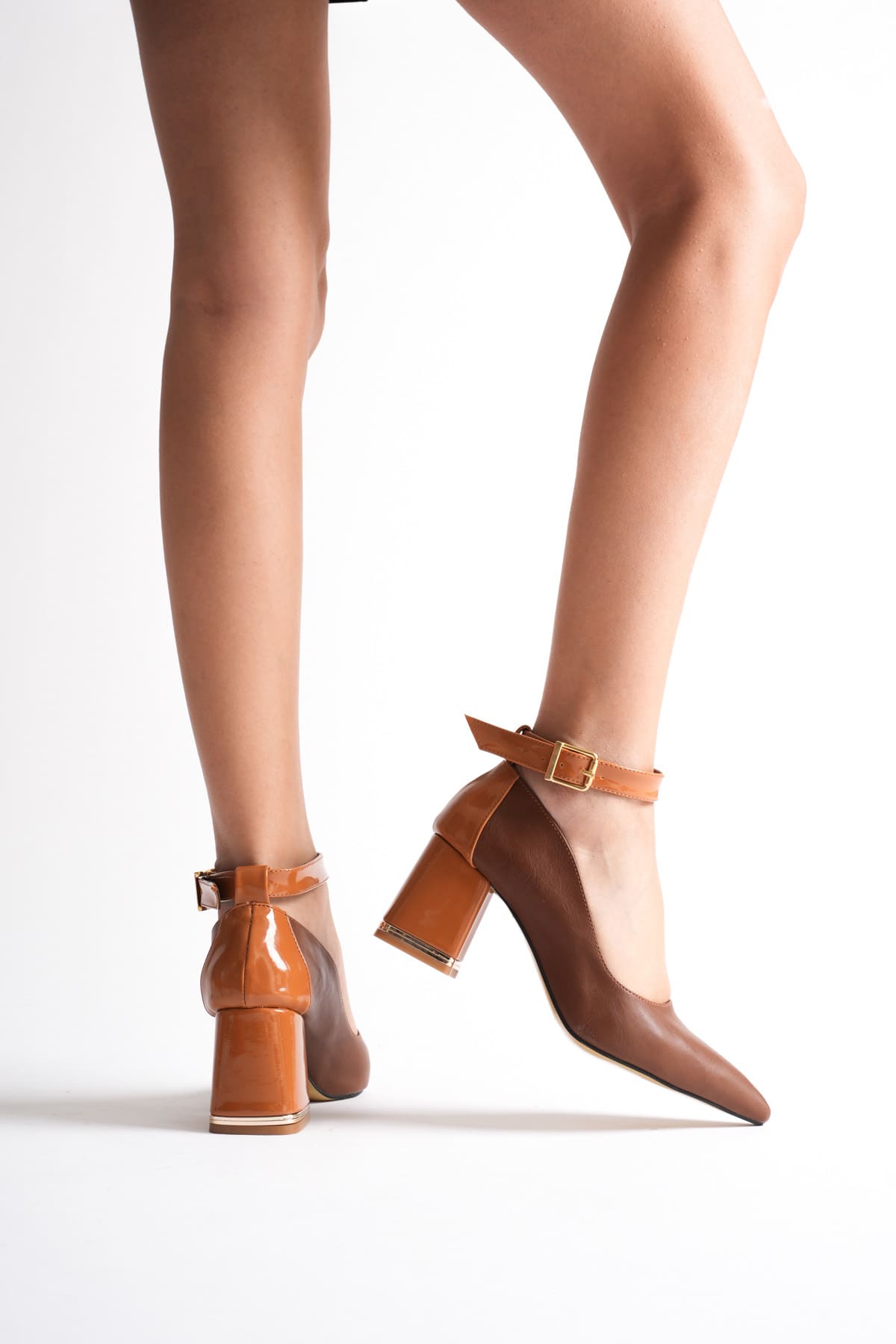 Cecilia Kadın Taba İnce Kısa Topuklu Ayakkabı