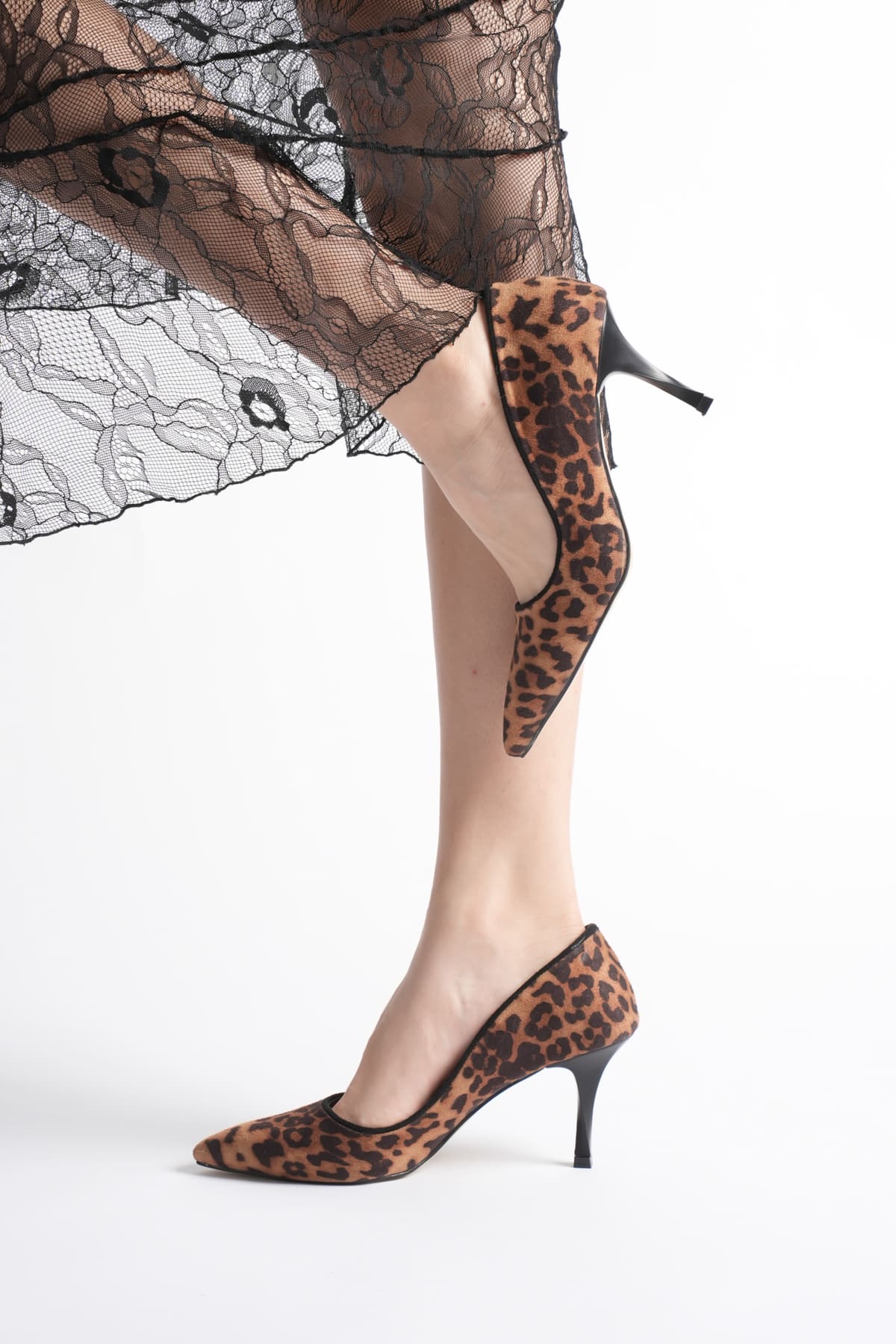 Felice Kadın Leopar Desenli Süet Topuklu Ayakkabı
