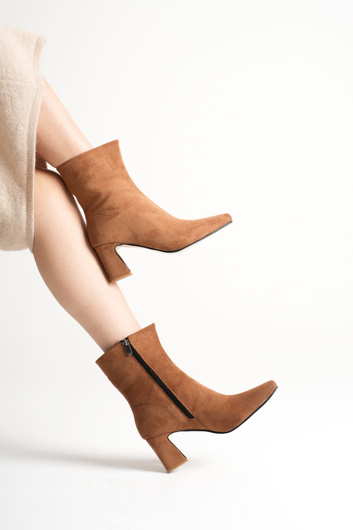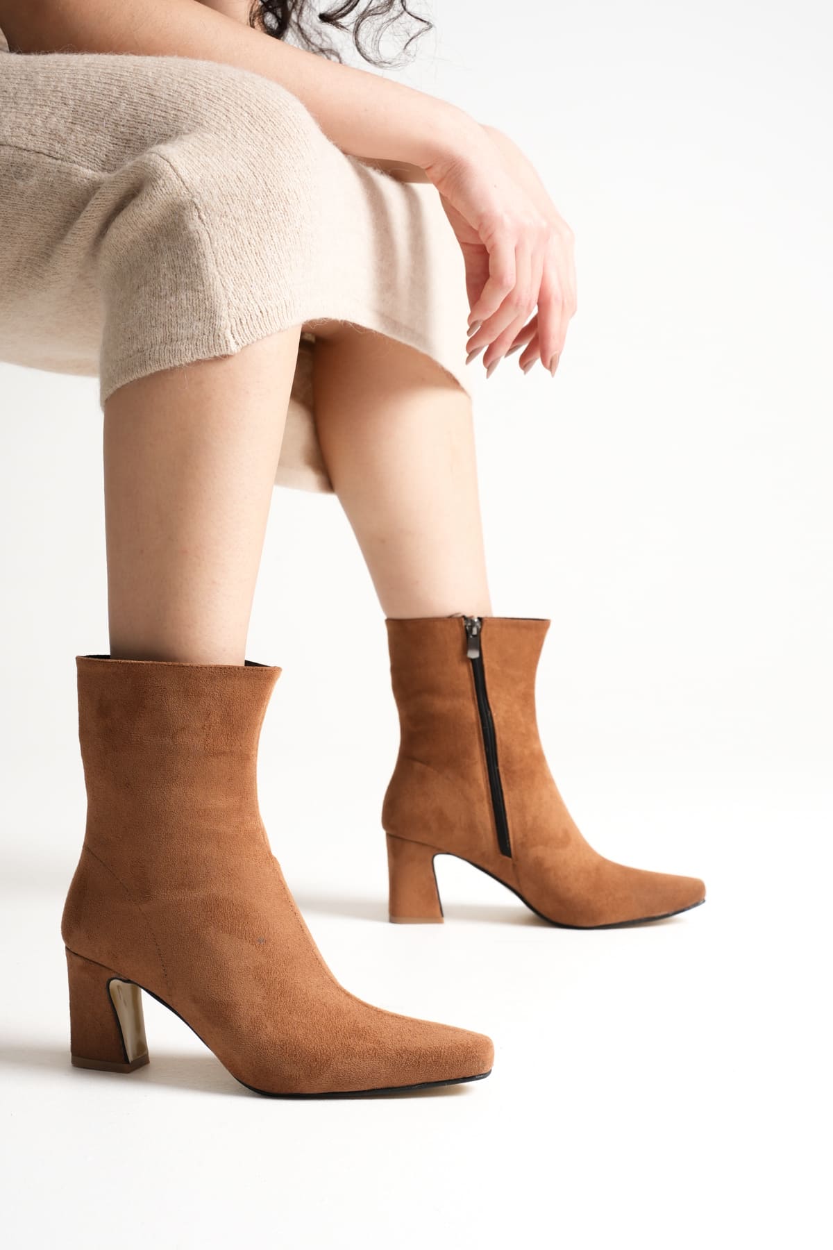 Fiora Kadın Taba Süet Kalın Topuklu Kışlık Bot