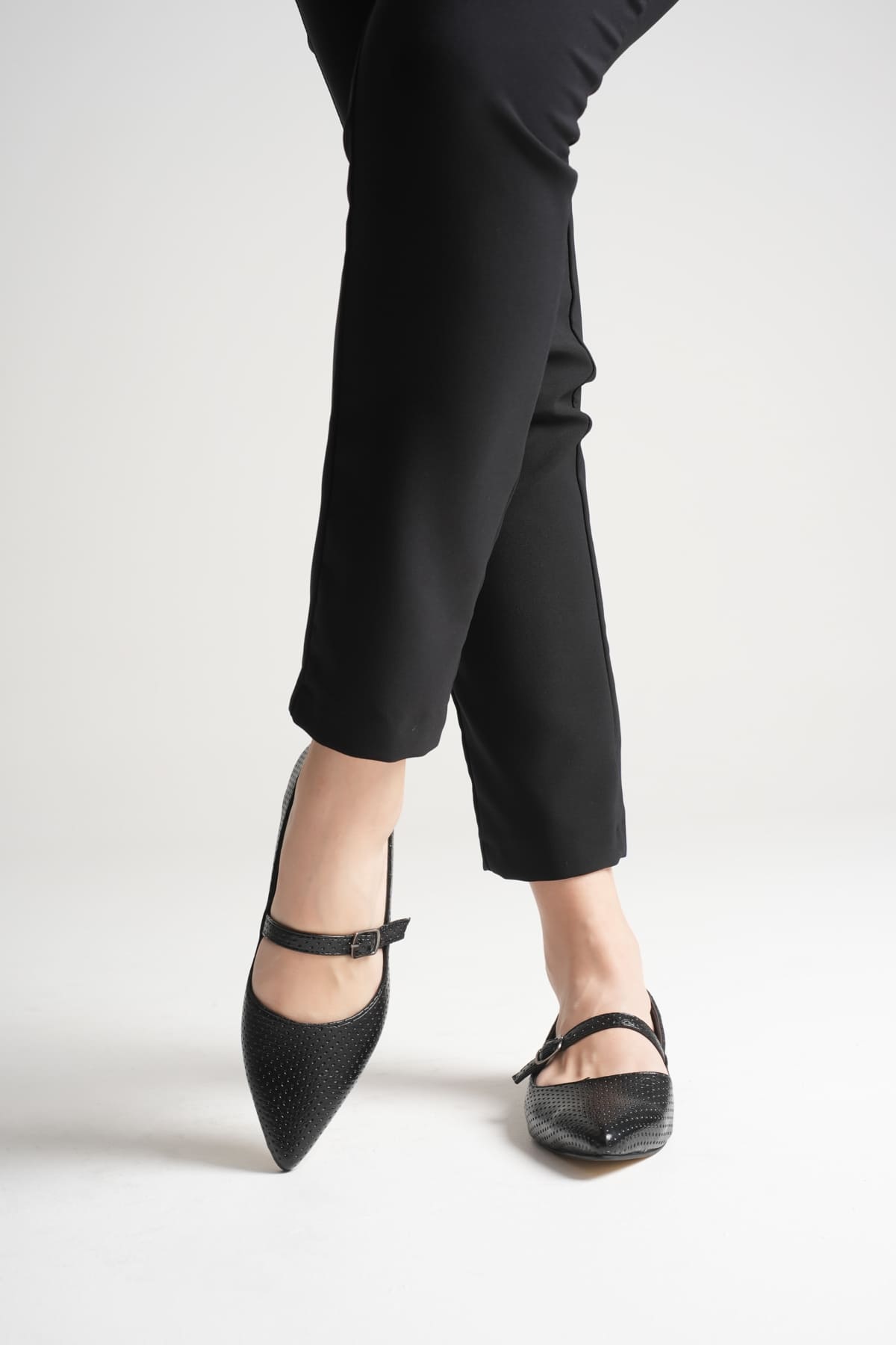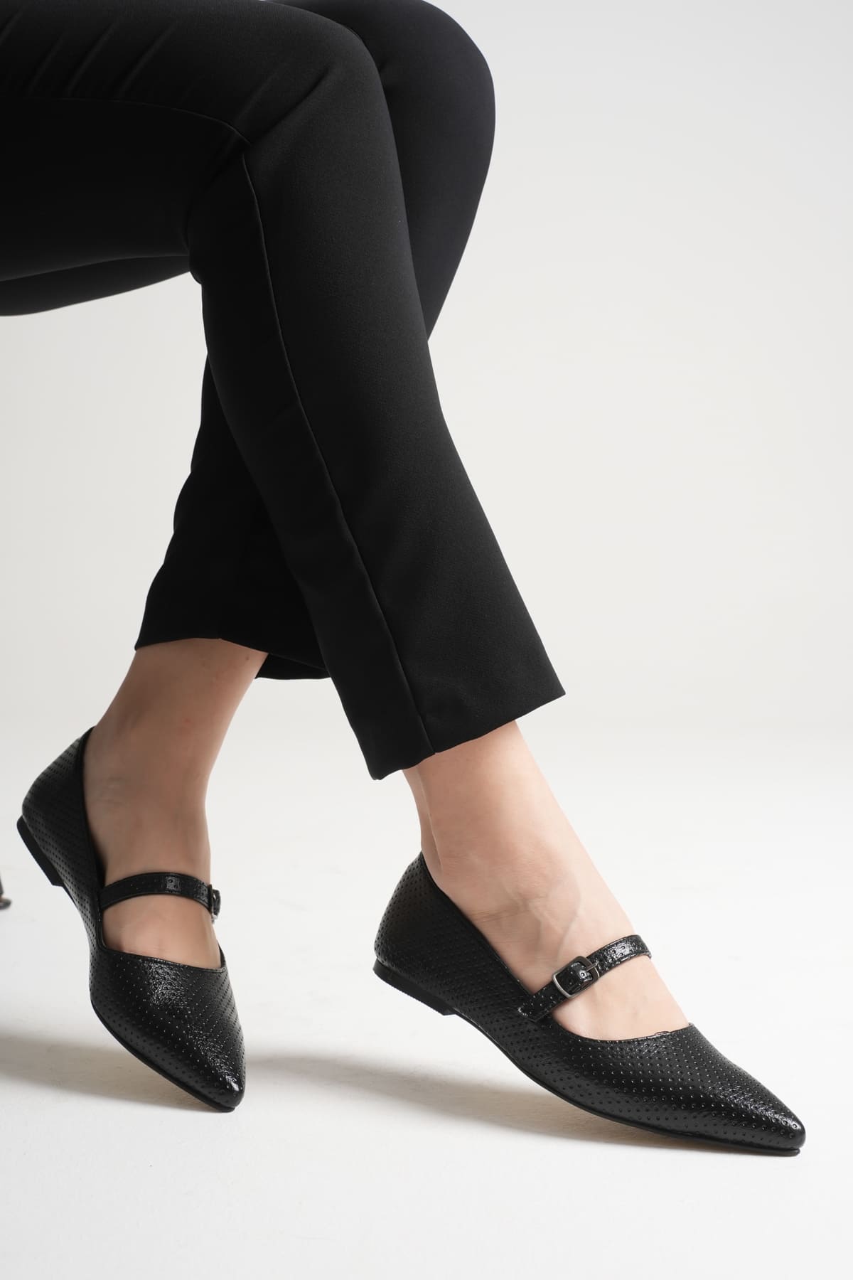 Isolde Kadın Siyah Desenli Babet Ayakkabı