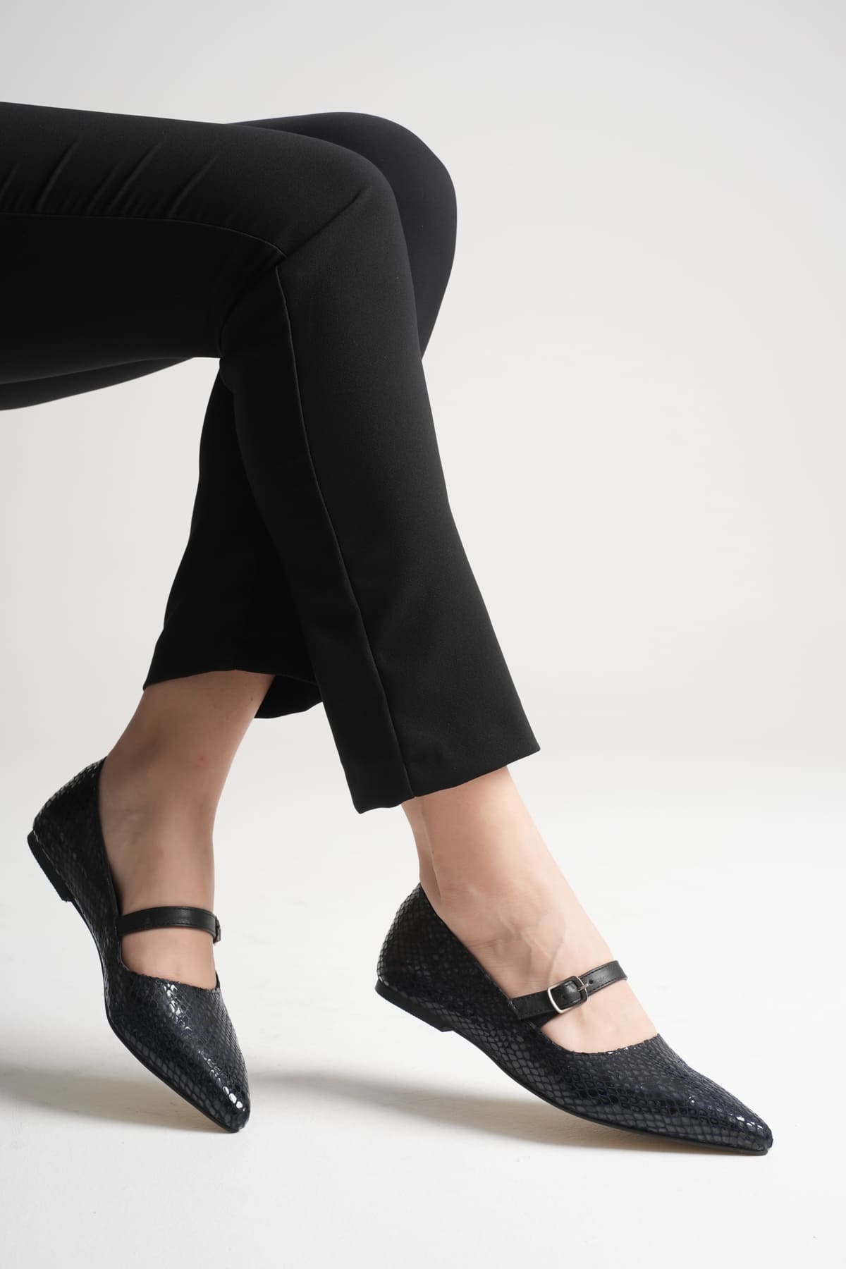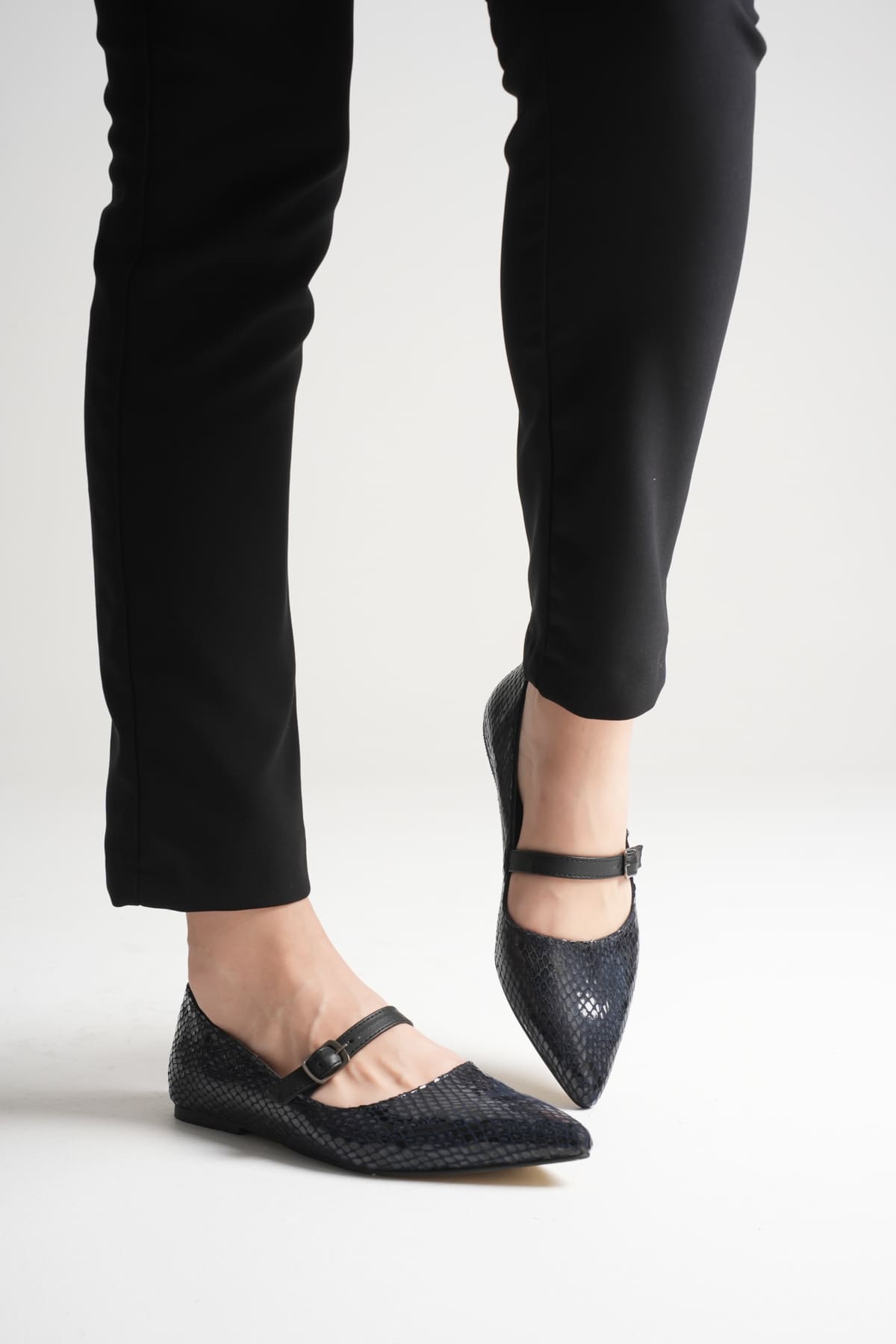 Isolde Kadın Lacivert Kroko Babet Ayakkabı