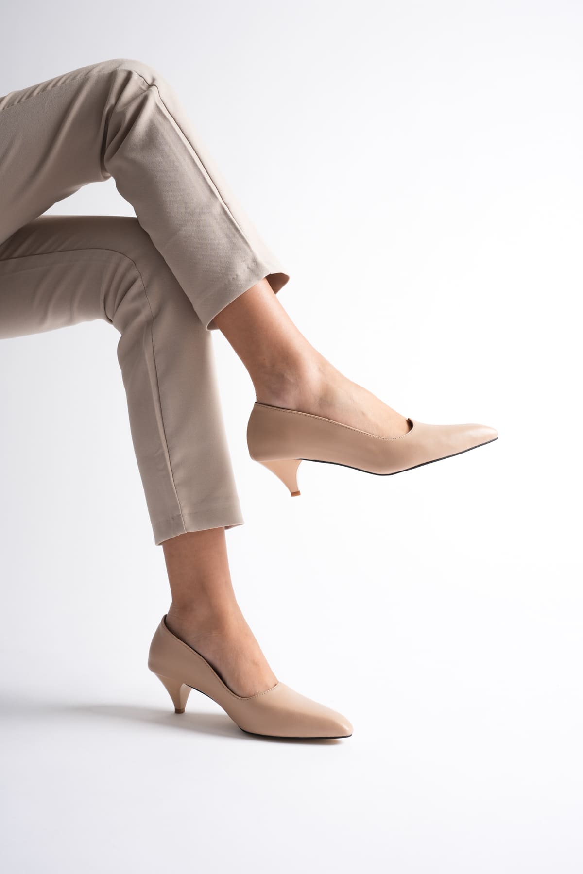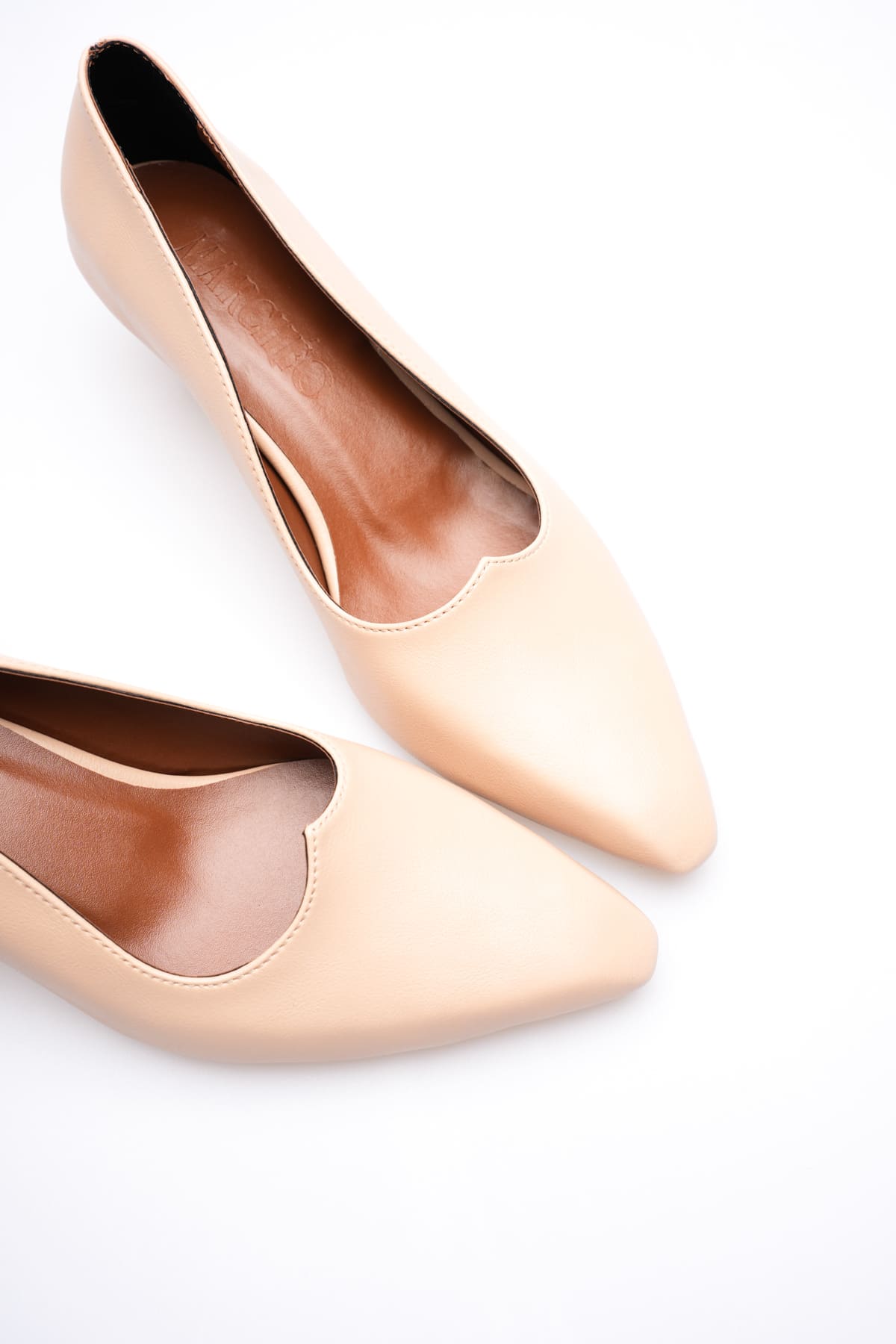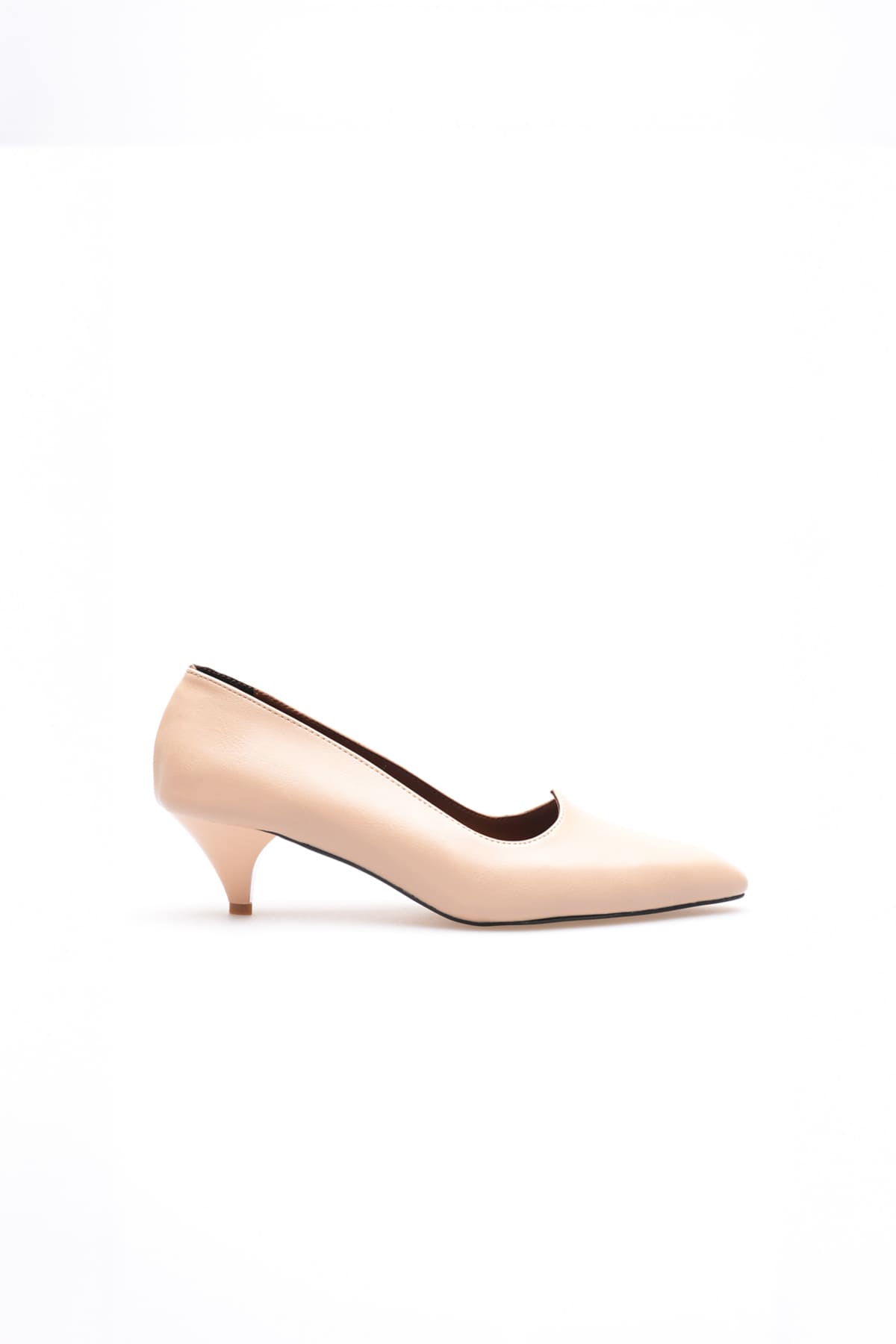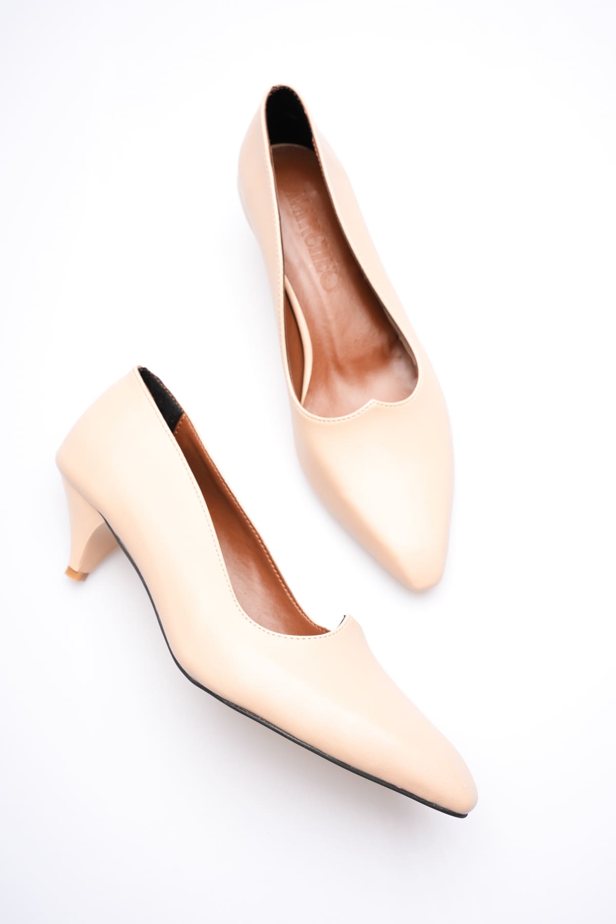 Cecilia Kadın Bej İnce Kısa Topuklu Ayakkabı