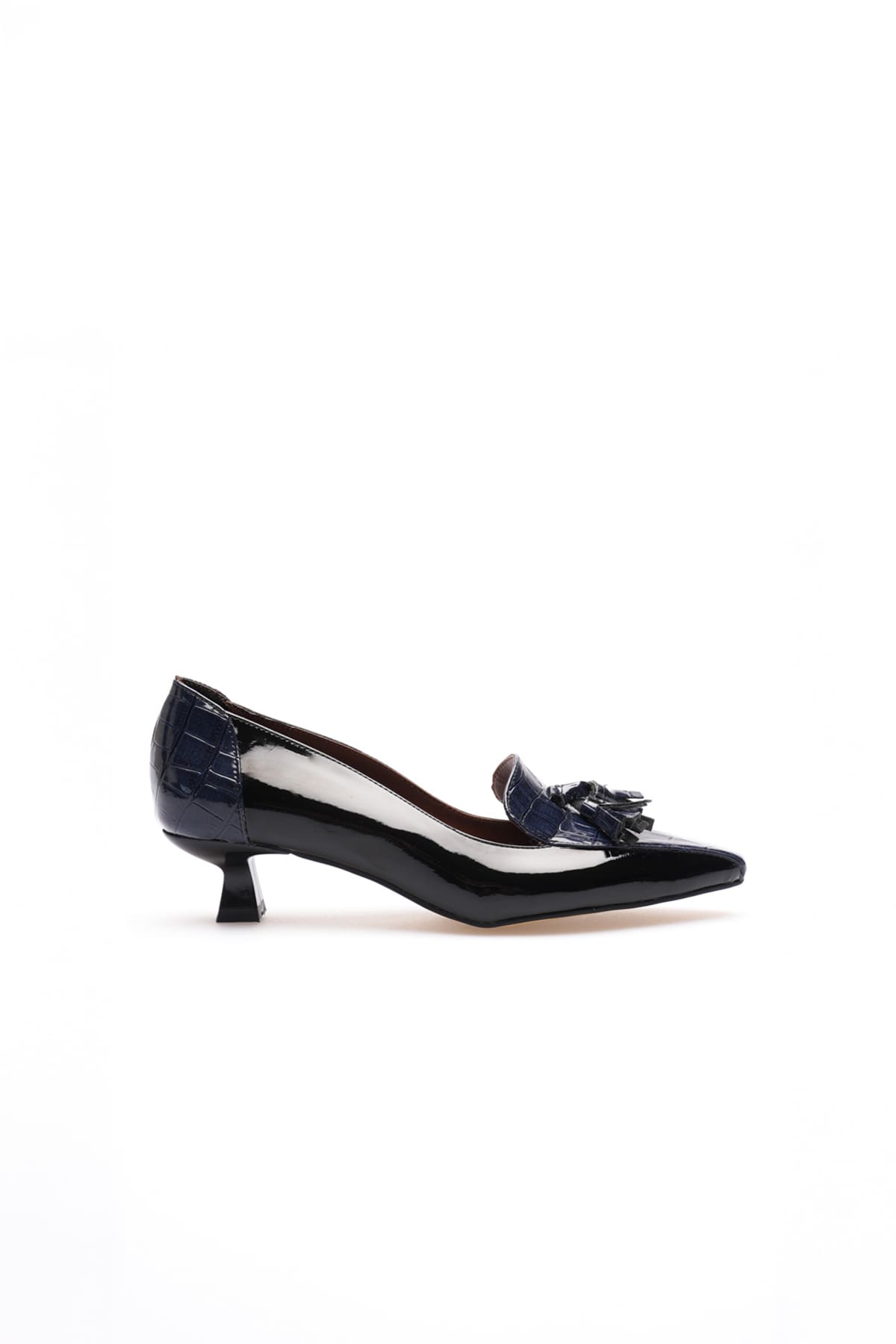 Elsie Kadın Siyah Lacivert Kroko Kısa Topuklu Ayakkabı