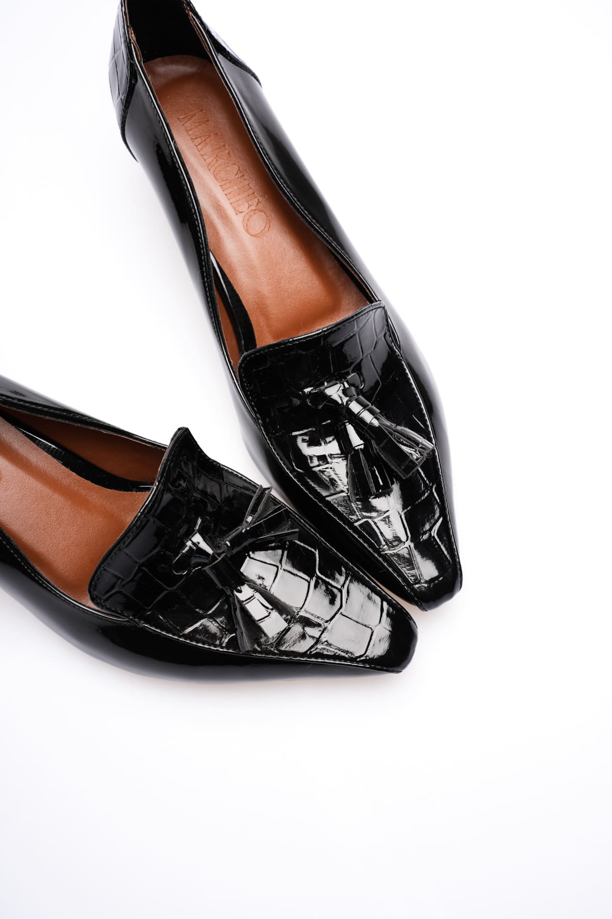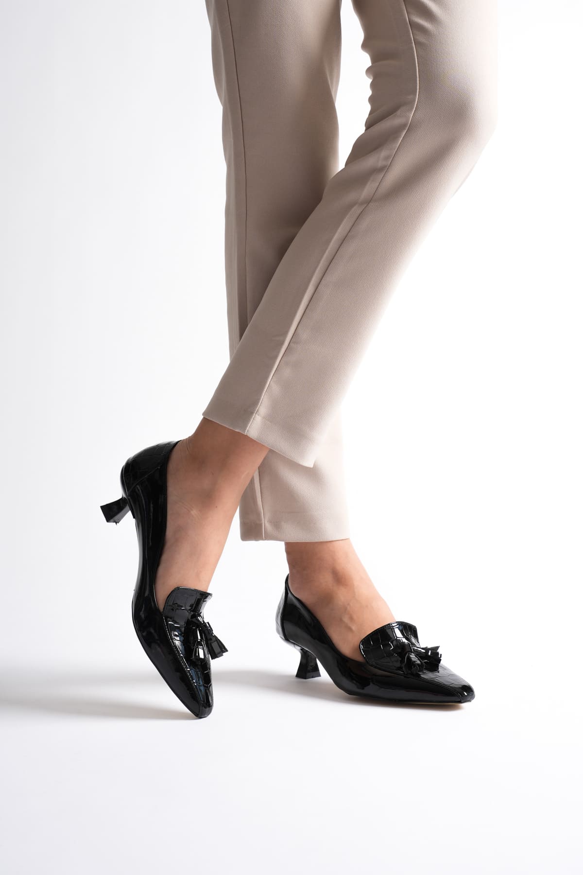 Lily Kadın Siyah Rugan Topuklu Ayakkabı