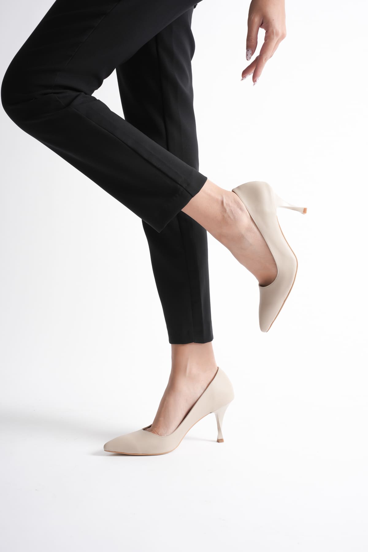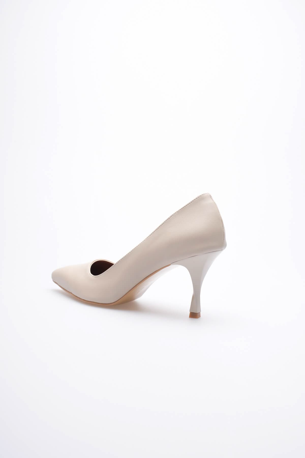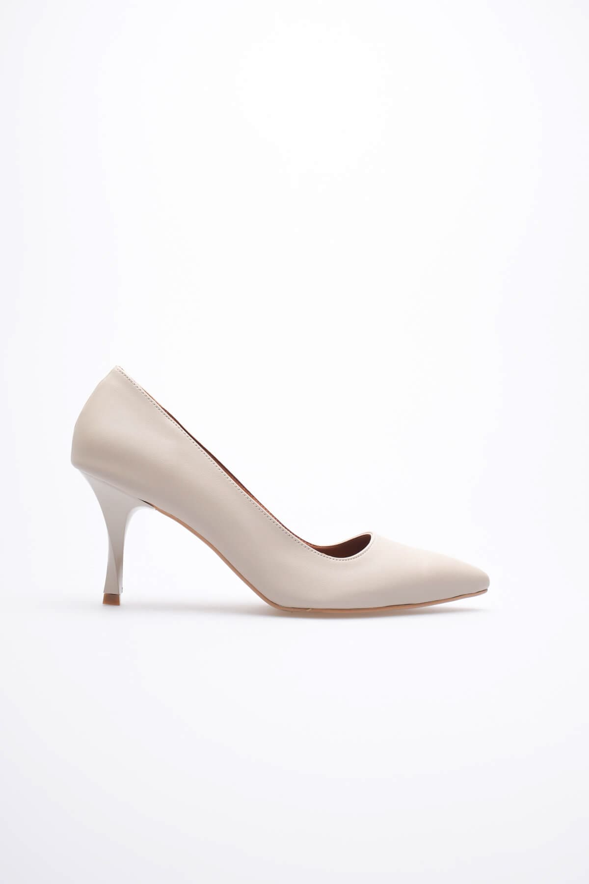 Cecilia Kadın Bej İnce Kısa Topuklu Ayakkabı