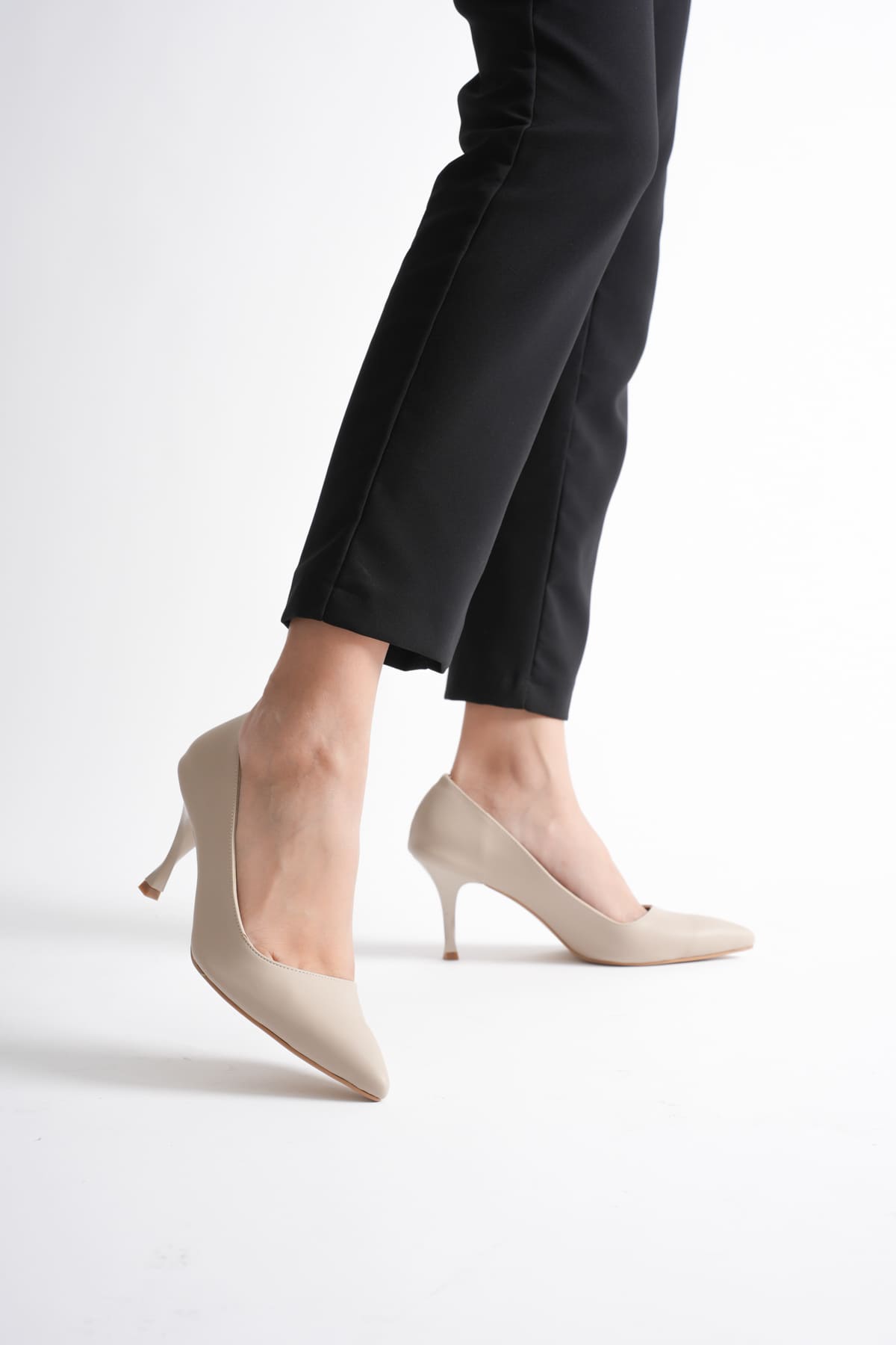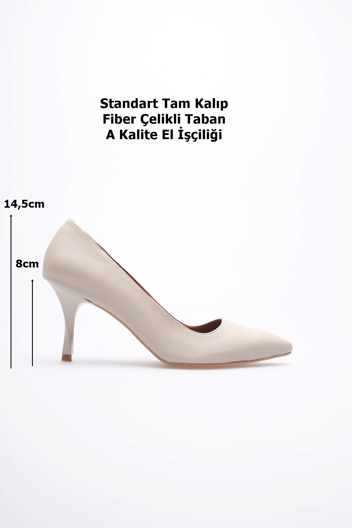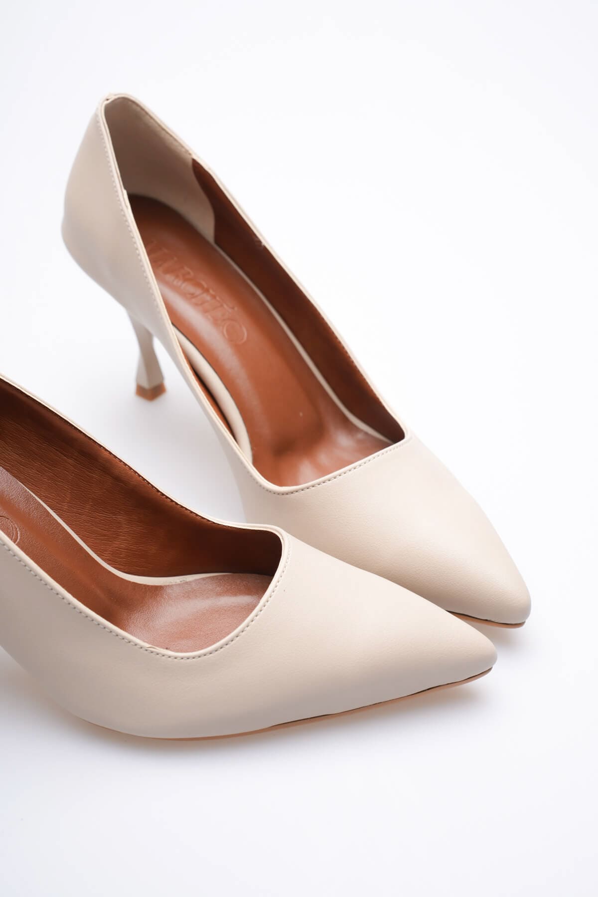 Cecilia Kadın Bej İnce Kısa Topuklu Ayakkabı