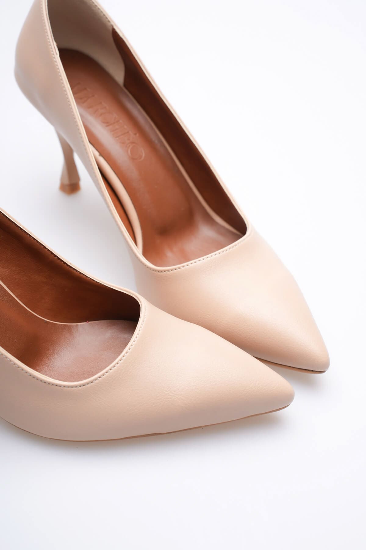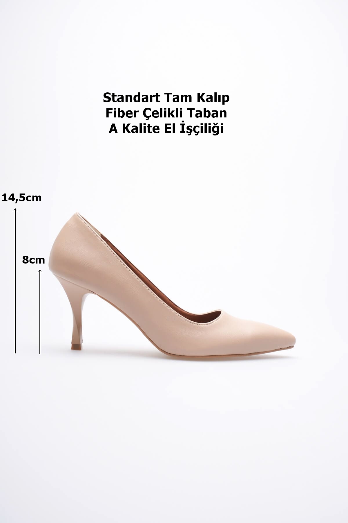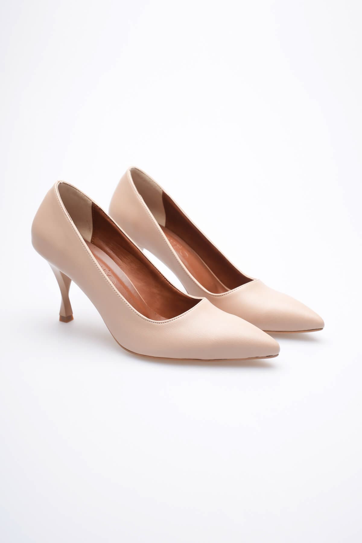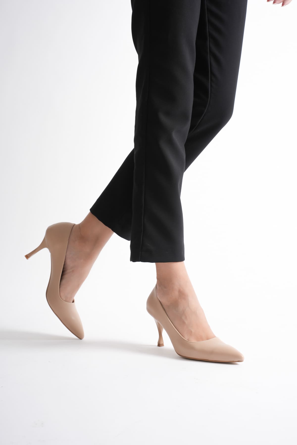 Cecilia Kadın Bej İnce Kısa Topuklu Ayakkabı