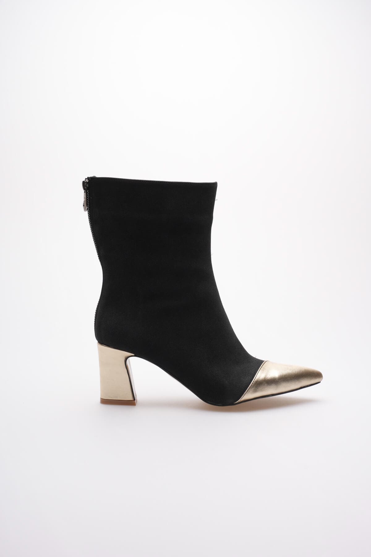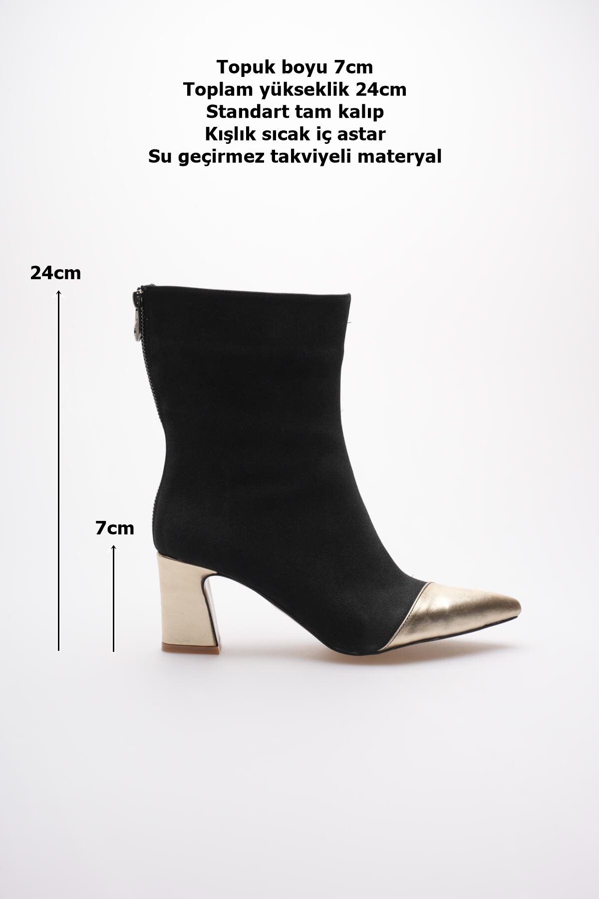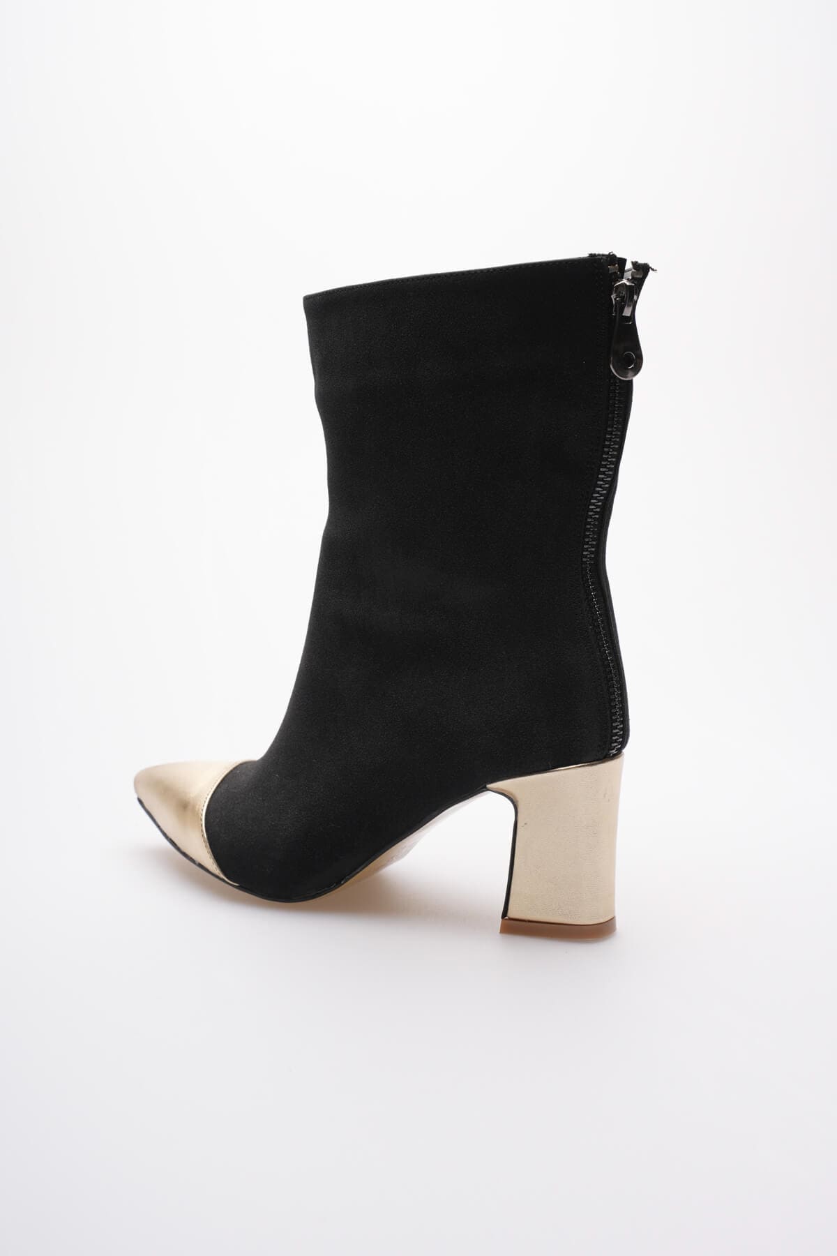 Lucinda Kadın Siyah Altın Kalın Topuklu Kışlık Bot