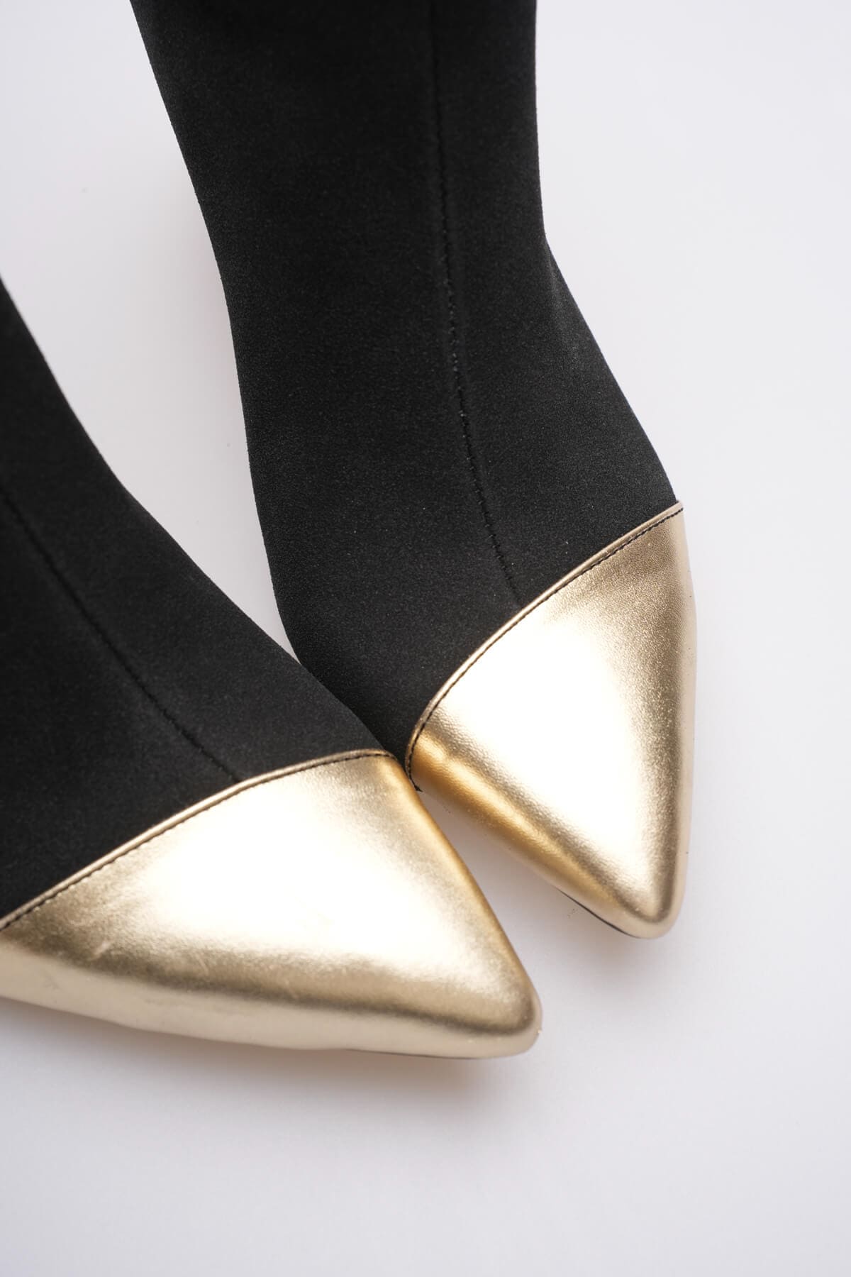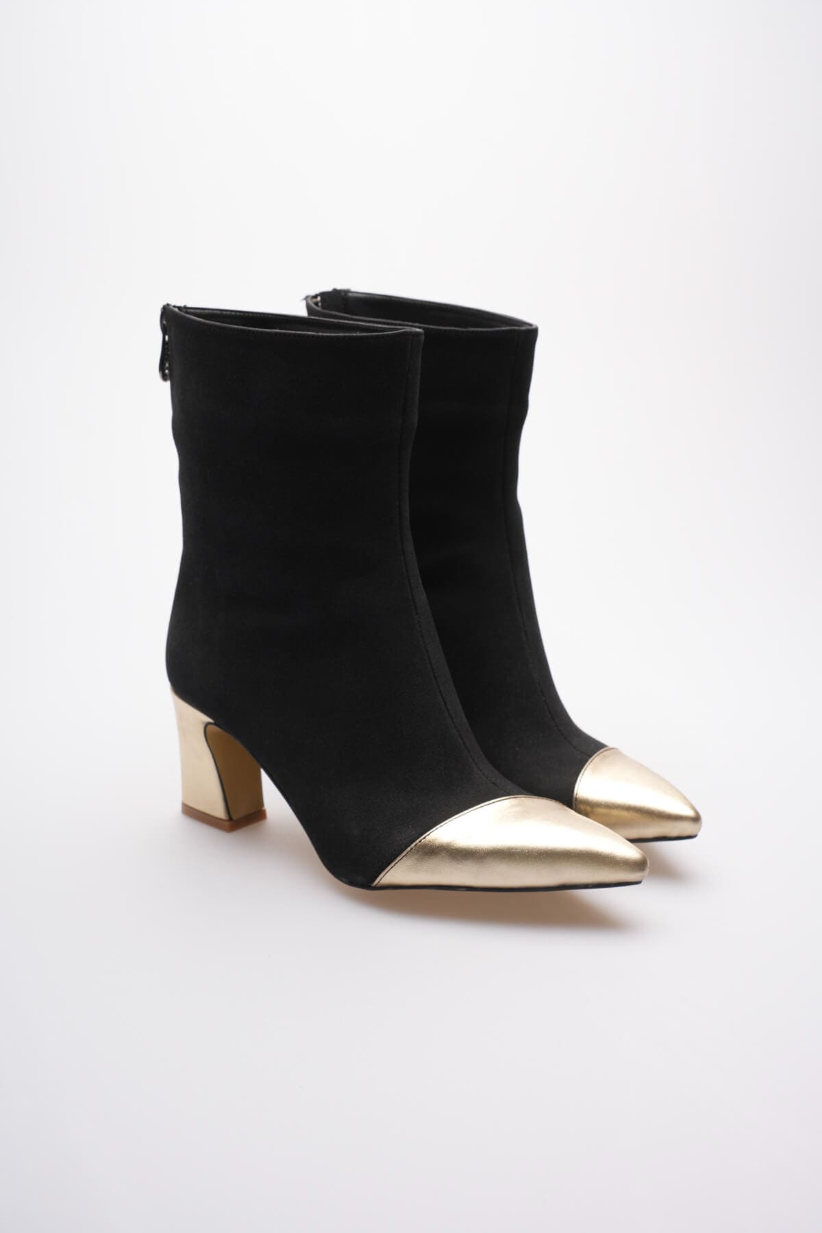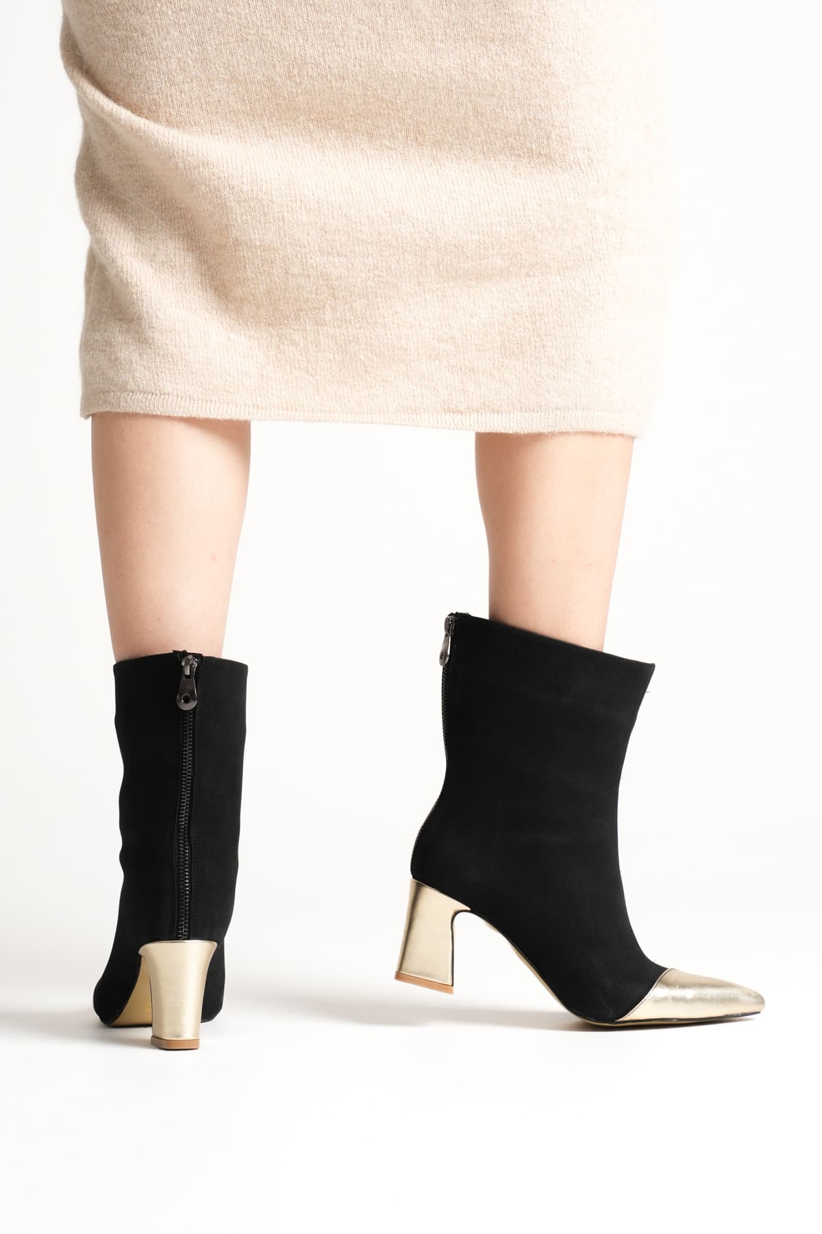 Lucinda Kadın Siyah Altın Kalın Topuklu Kışlık Bot