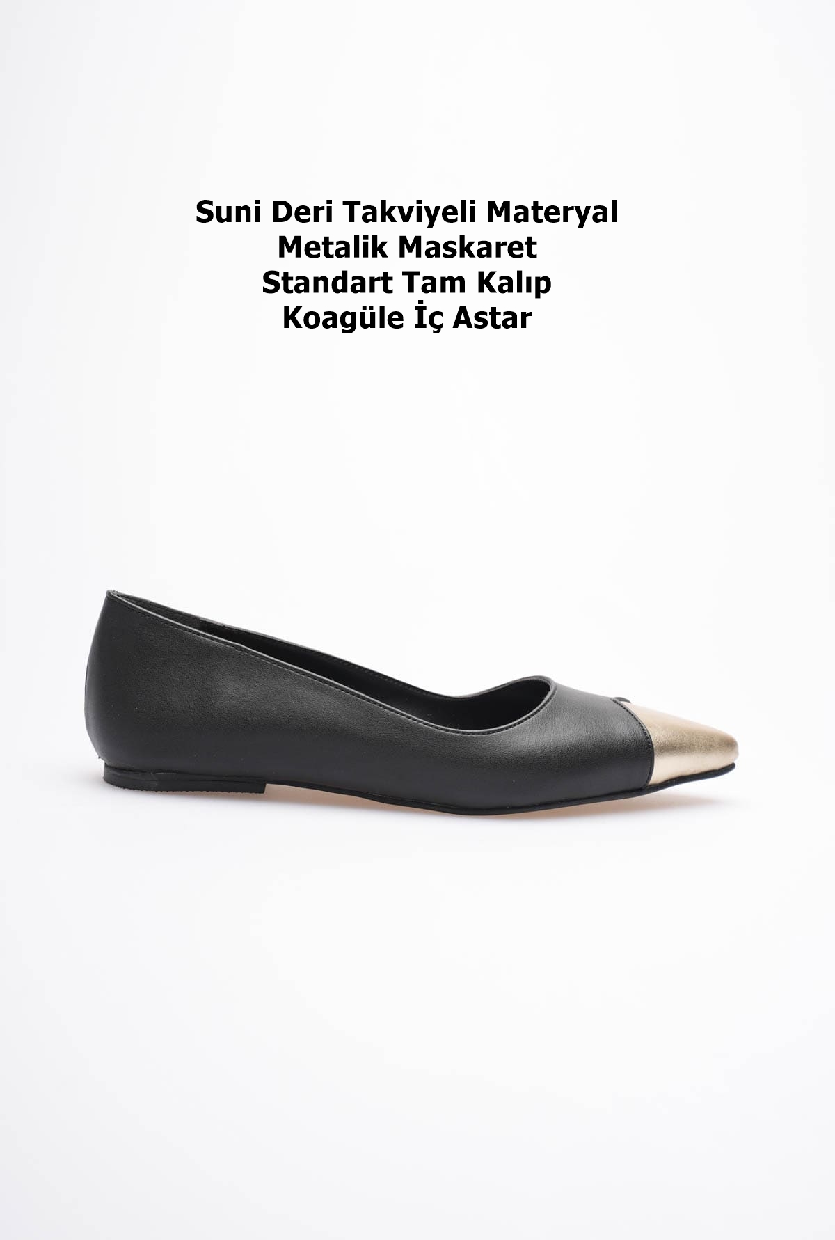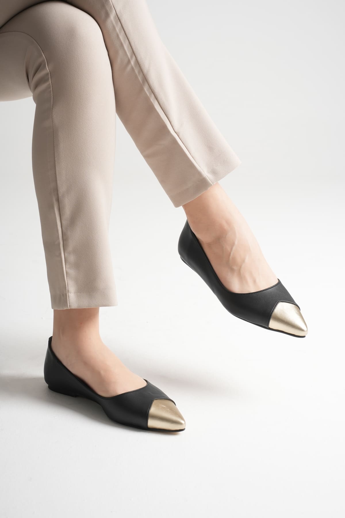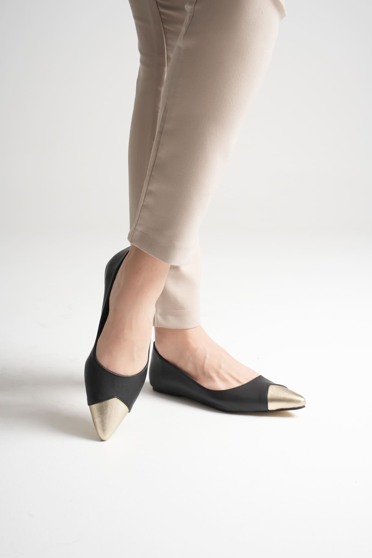 Margaret Kadın Siyah Altın Babet Ayakkabı