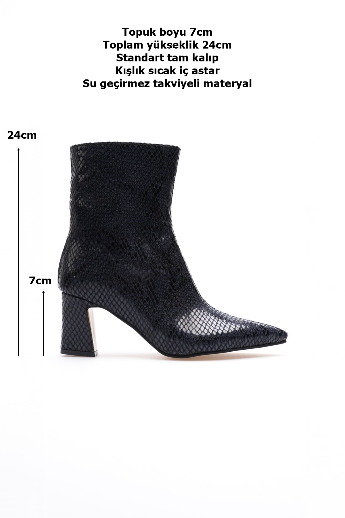 Nadia Kadın Lacivert Kroko Kalın Topuklu Kışlık Bot