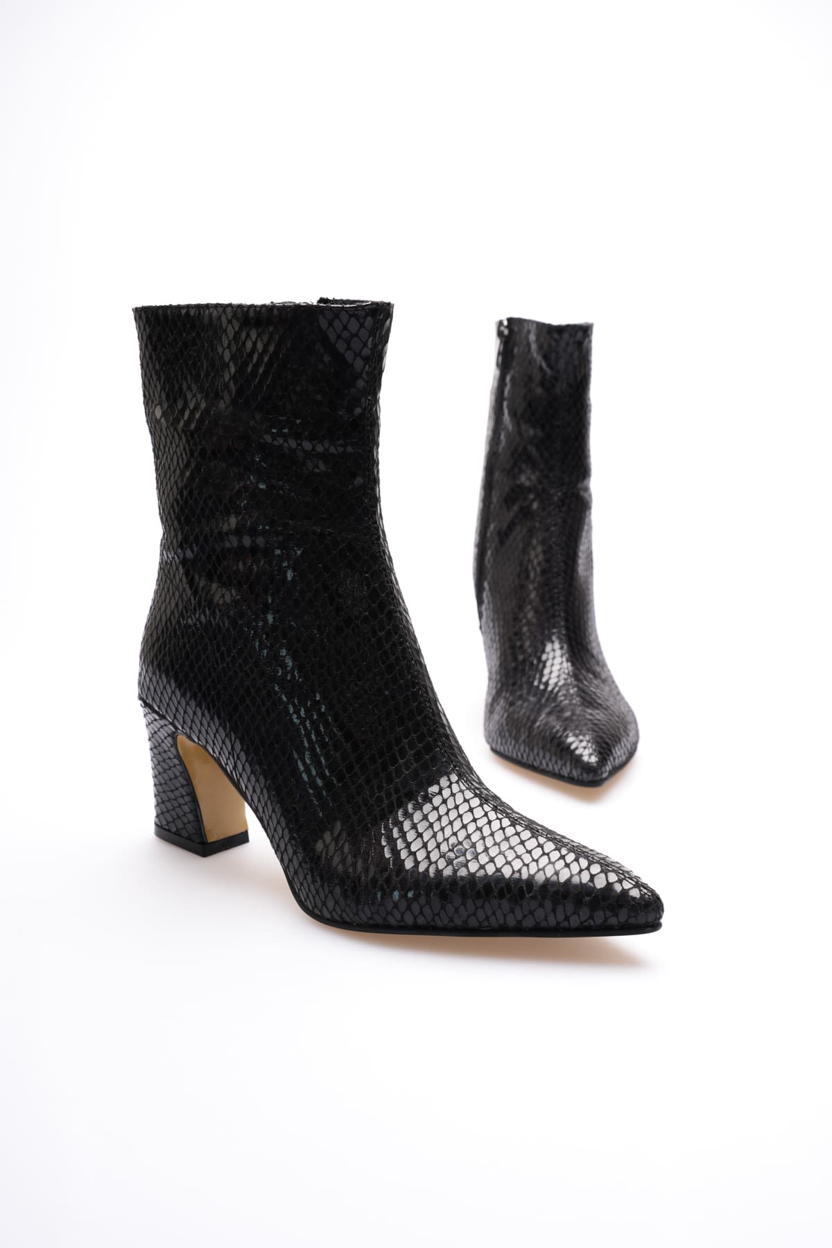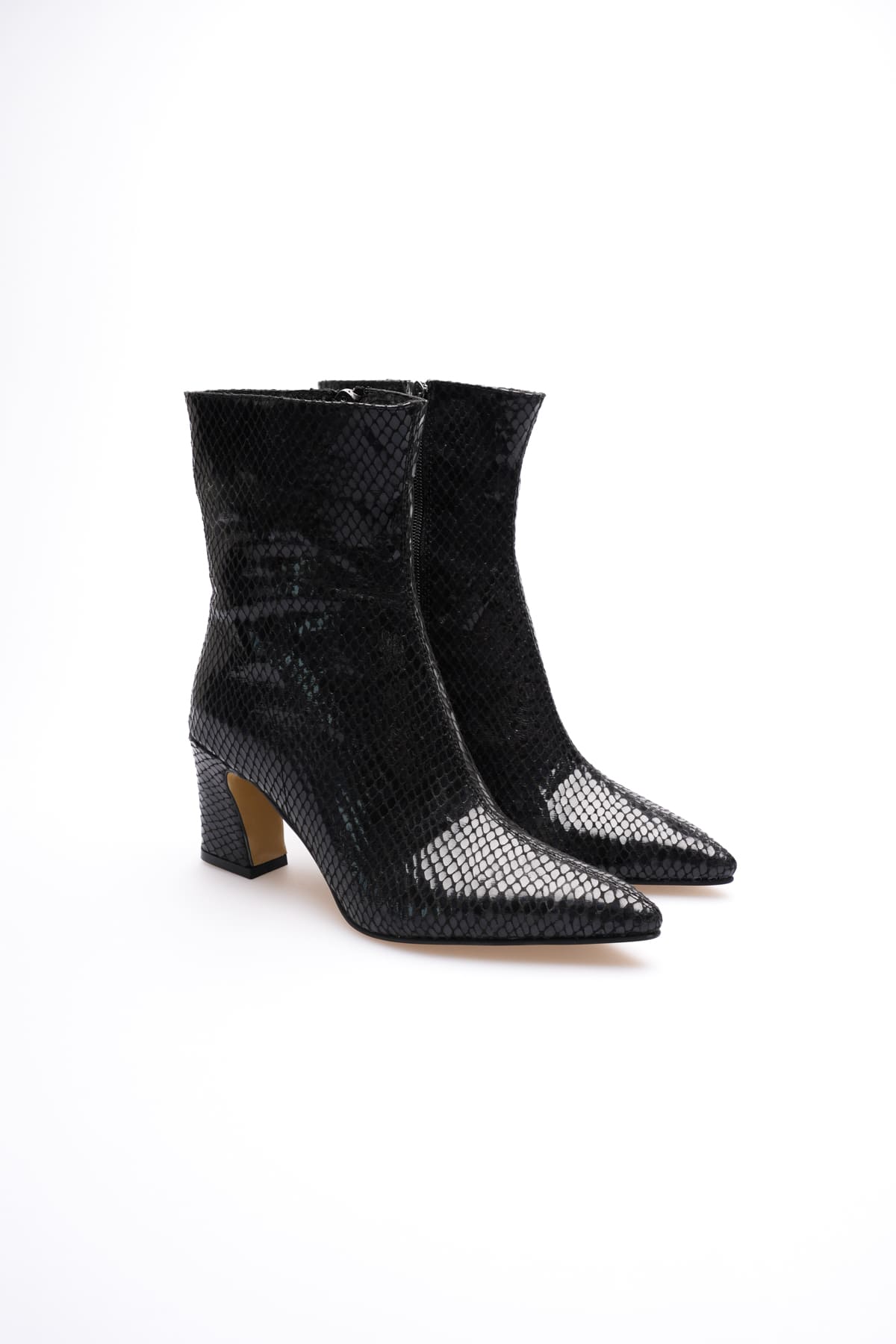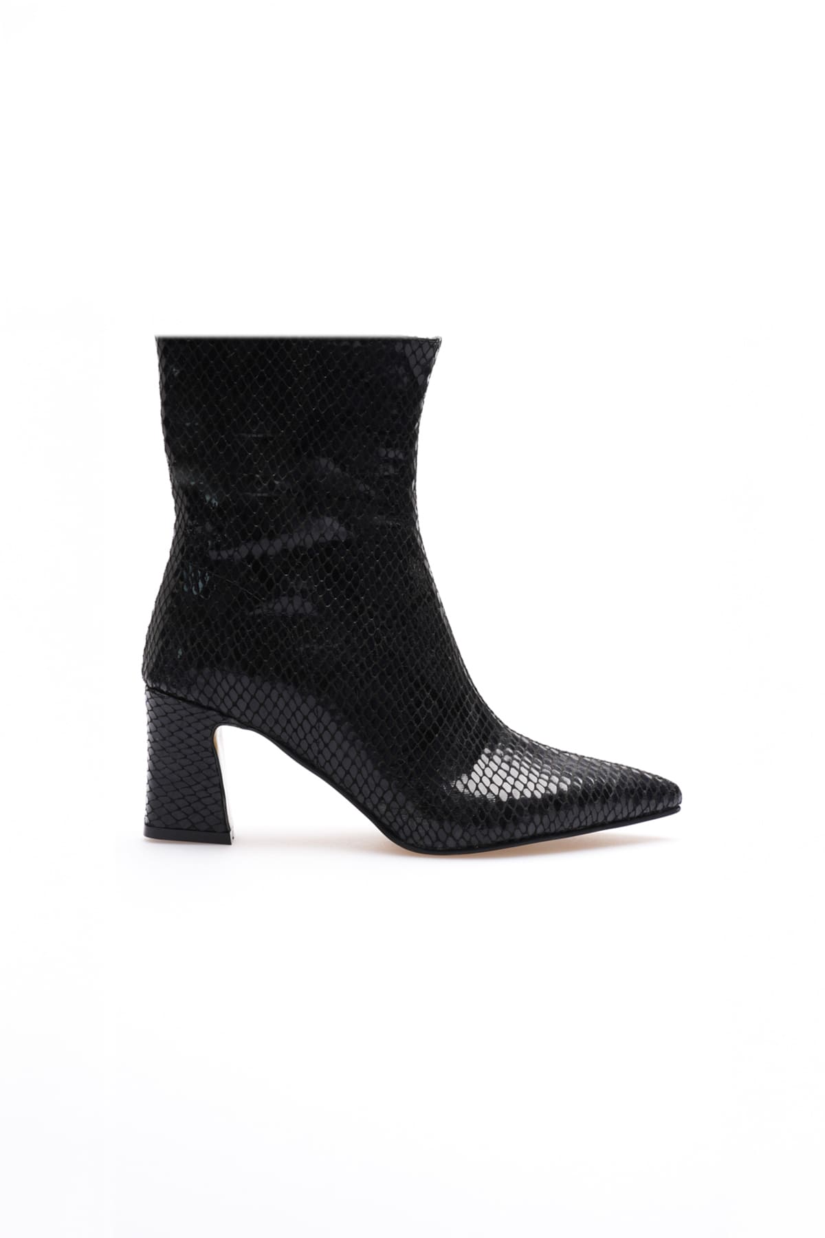 Nadia Kadın Siyah Kroko Kalın Topuklu Kışlık Bot