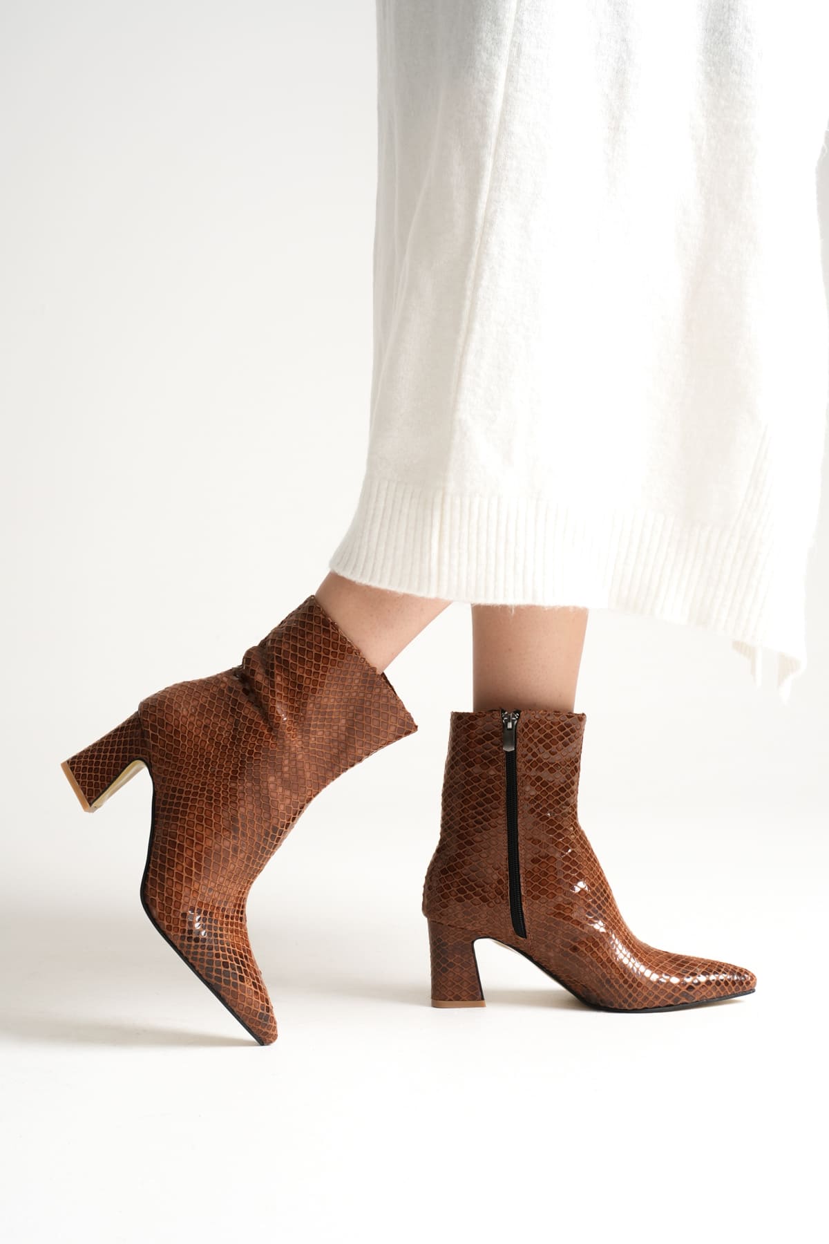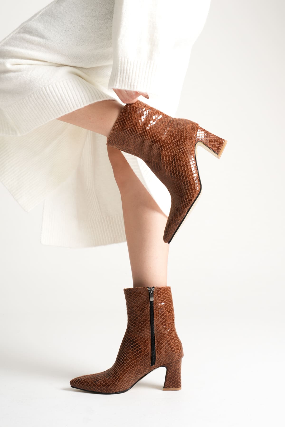 Nadia Kadın Taba Desenli Kalın Topuklu Kışlık Bot