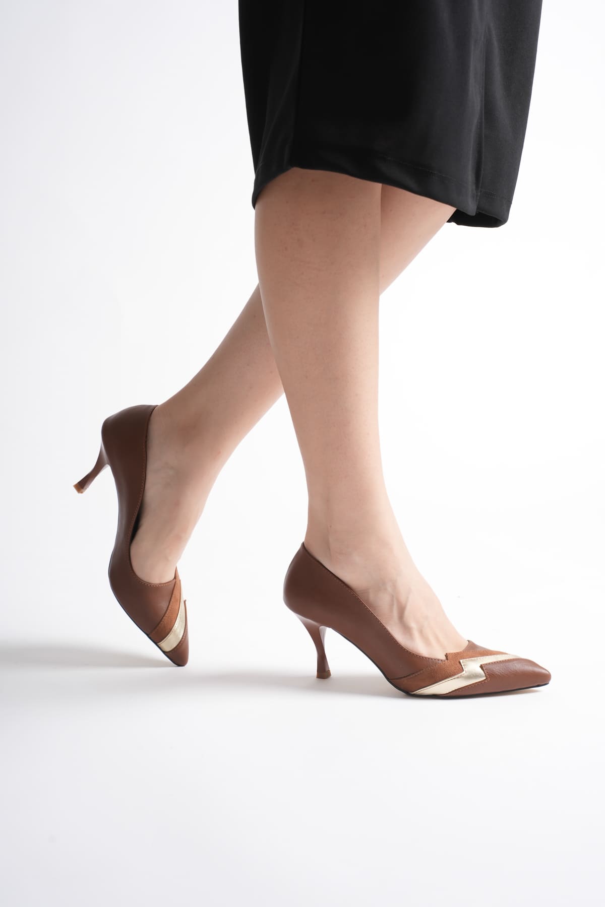 Cecilia Kadın Taba İnce Kısa Topuklu Ayakkabı