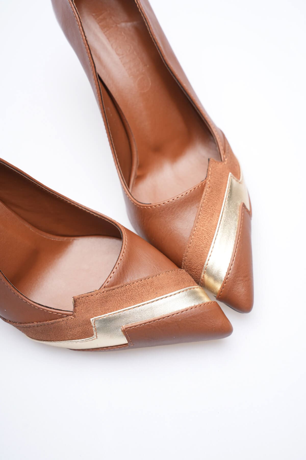 Estelle Kadın Taba Altın Kalın Topuklu Ayakkabı